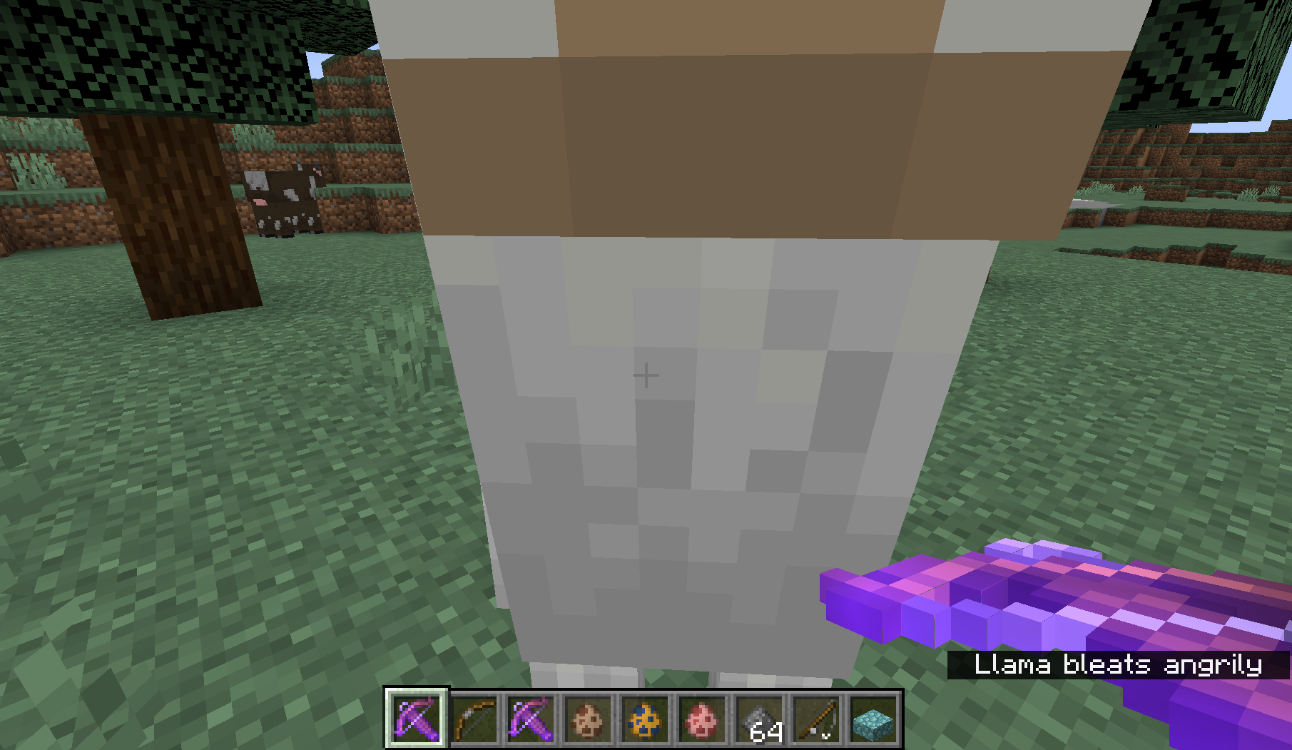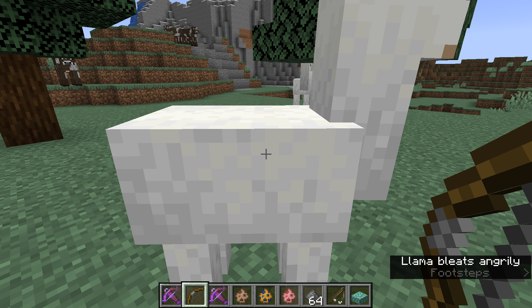 When standing within about four blocks of a llama/ trader llama, bows and crossbows in main hand cannot be charged/ fired by right clicking; instead it will trigger llama sound. Already charged crossbows cannot be fired as well.