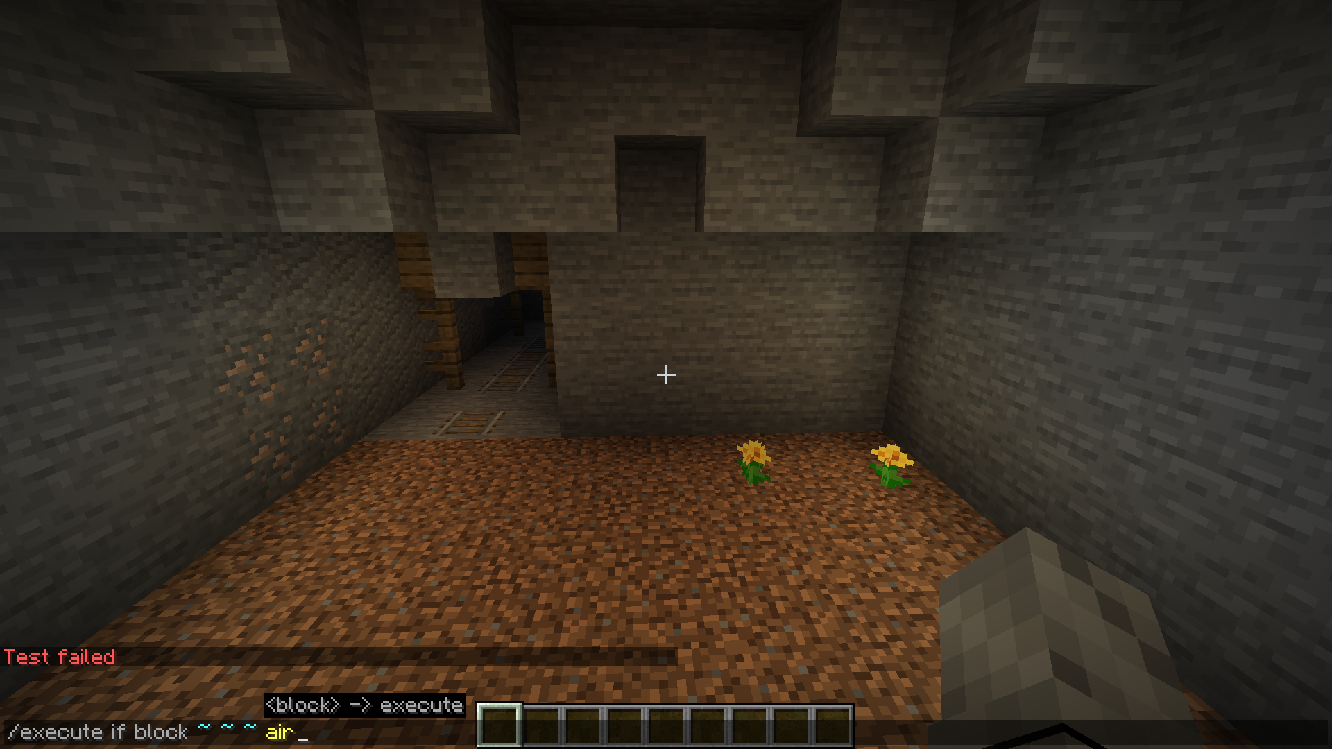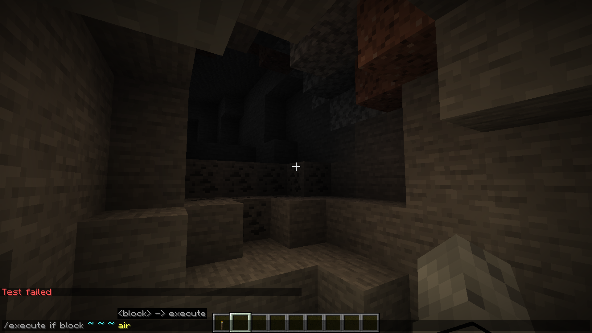 Caves and mineshafts create empty blocks instead of air, making it impossible to mark using commands (Shown on screens below)