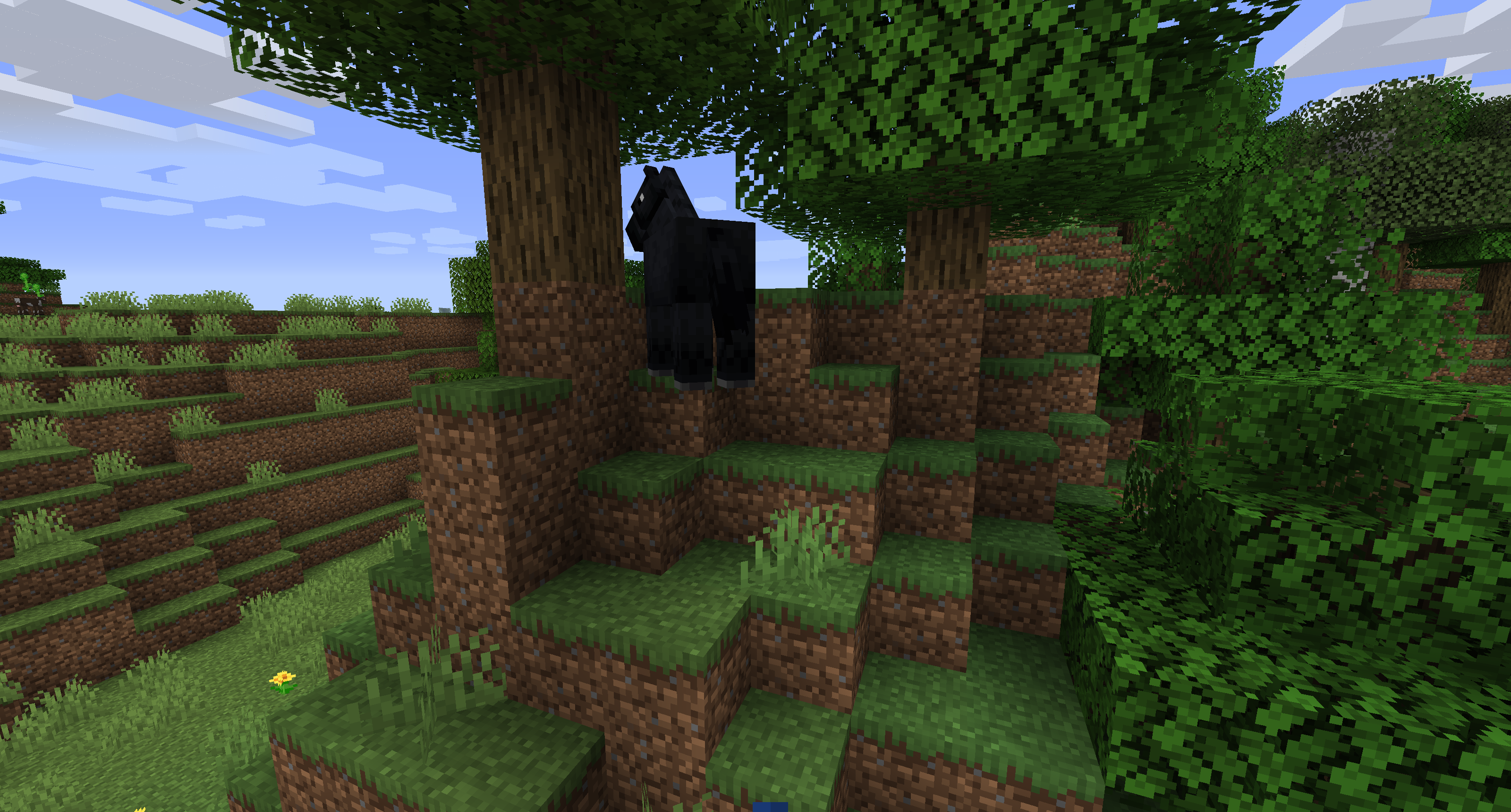 I discovered a horse floating one block above the ground. It was floating above a regular grass plant (minecraft:grass). Next to it was its two foals. Upon attempting to ride the floating horse, the horse stopped floating and fell to the ground. There is not a single command block or function/datapack that could be giving a horse the NoGravity NBT tag, repetitively teleporting a horse to one specific block, or placing a barrier block below it. I did not interact with the horse in any way before I noticed it floating. I did, however, see it not floating when I loaded the chunk for the first time, but upon wandering around more and coming back, it was floating.