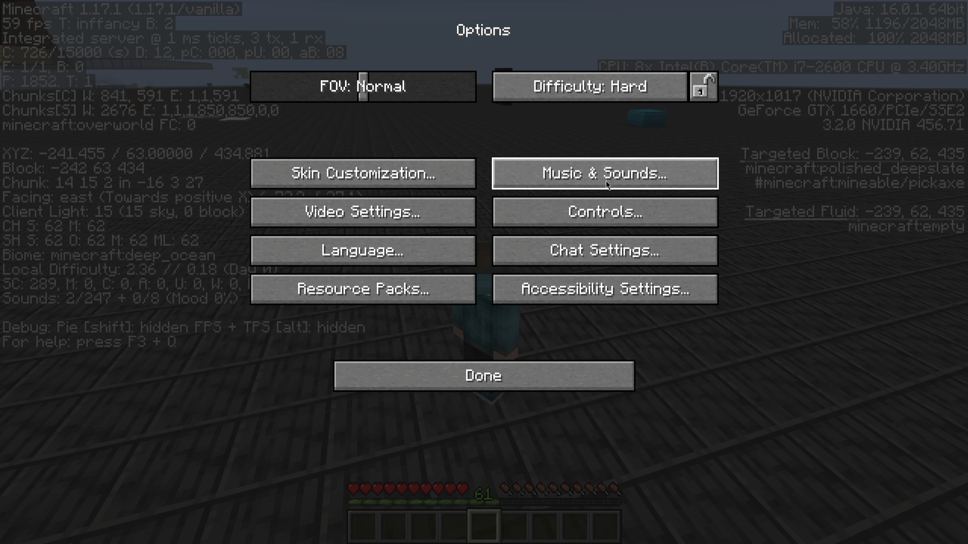 Also, strangely, moving the mouse to be over a slider does not produce the extra sound when entering the Video Settings menu, but does work in Options, Music & Sounds, Controls, Chat Settings, and Accessibility Settings.