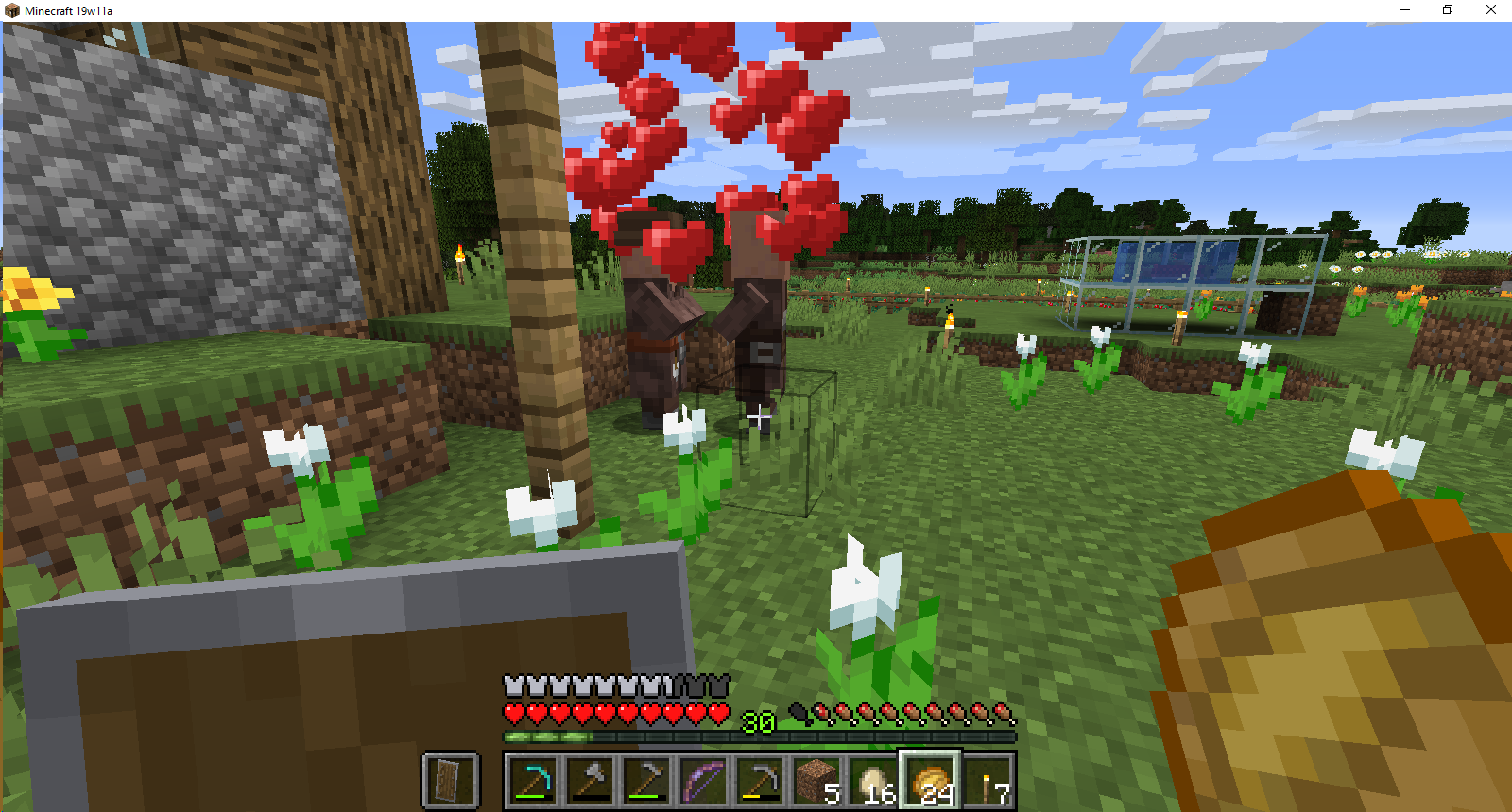 In a village with 5 villagers, all the villagers throw heart particles. Constantly, in every 3-4 seconds. They're talking to each other, grasping each other's hands, however no childrens are borning at all.