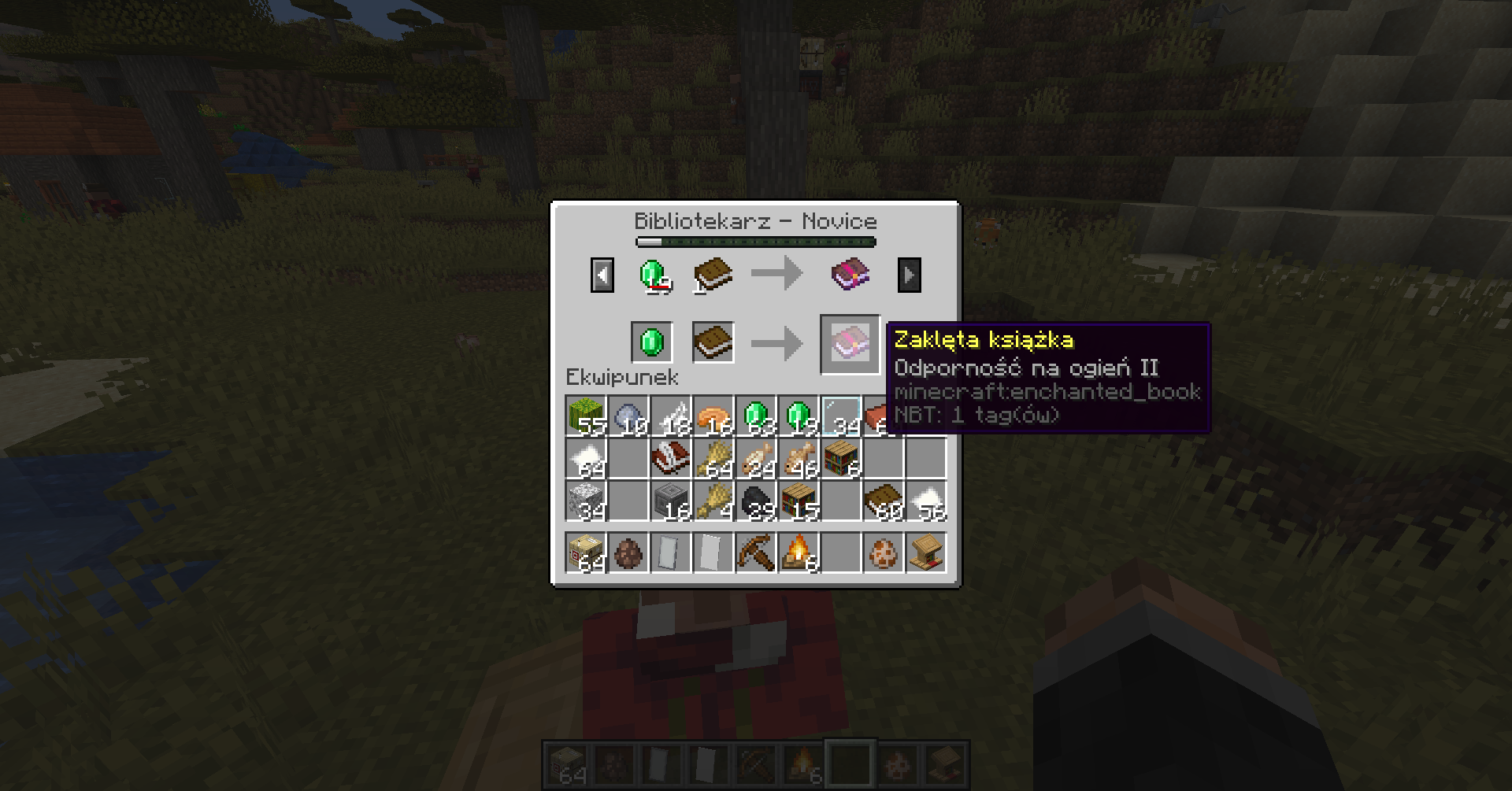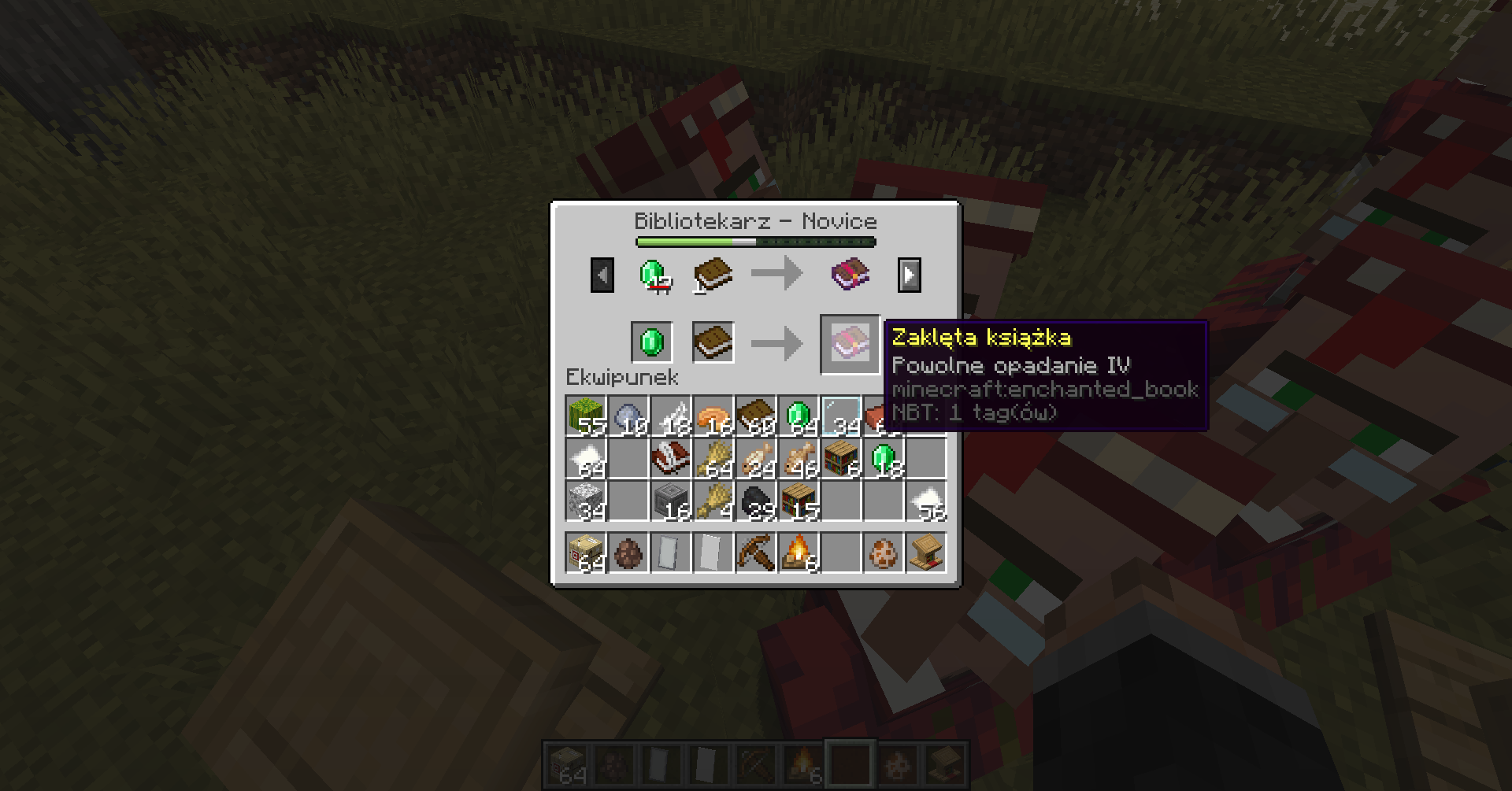 Can buy various enchanted books for a book and 1 emerald (at first they costed from 11 to 47 emeralds)