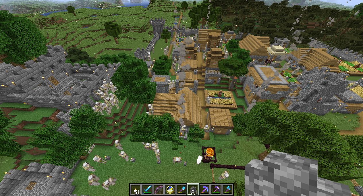 Would someone please look at the attached photo of naturally spawned Iron Golems from the village behind the walls and explain how this number is "behavior that is working as intended and not a bug". As I stated in my earlier comment, I remove newly spawned golems from the village and place them outside the walls so as not to congest village life (seven golems remain in the village for protection). The sheer number of spawning golems is staggering. You might compare the current photo with the one from my earlier comment above. I need help with this.