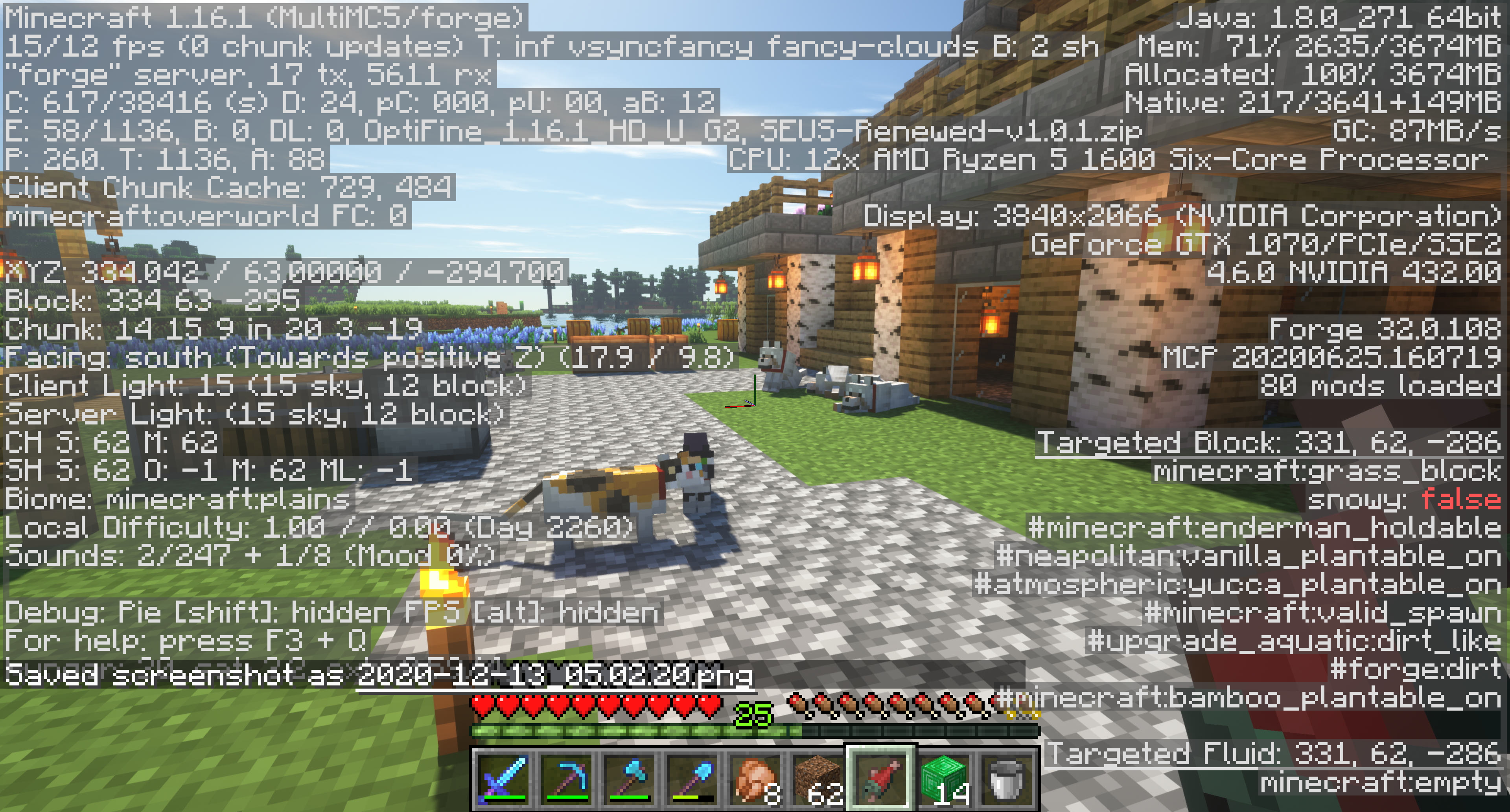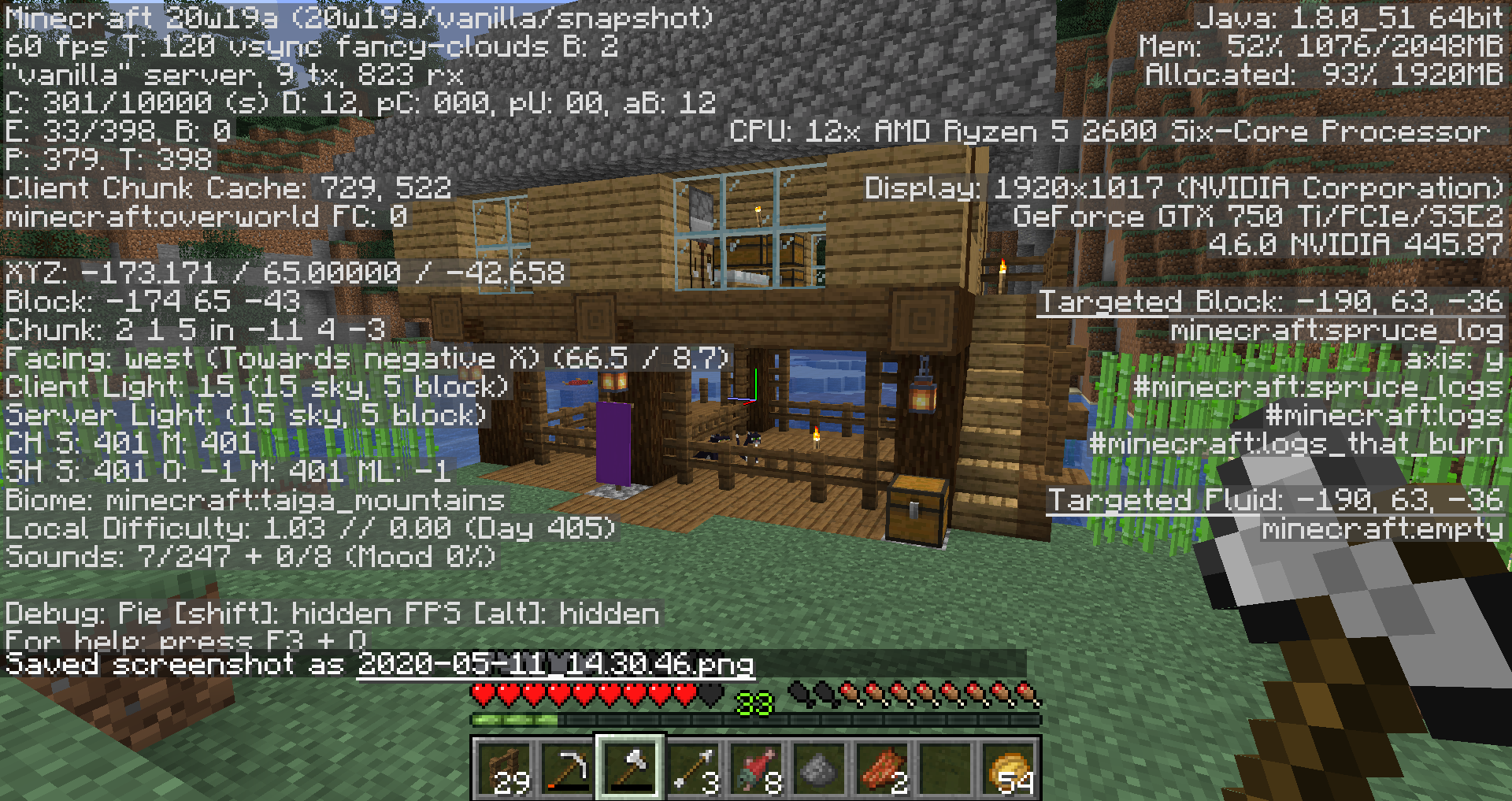 I'm not really sure the full details of what F3 is supposed to show, so not sure if I have the screenshots at the right time or anything.