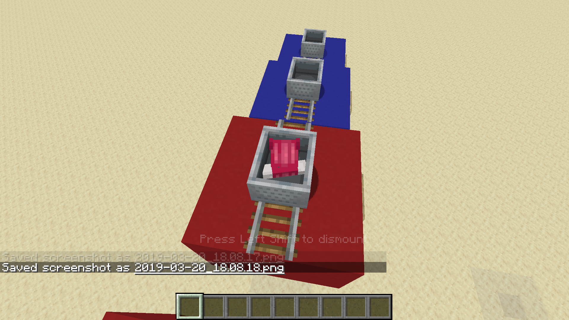 At the exit of the minecart, I'm supposed to go out on one side of the minecart. From layer 65 and up, I'm in the block below the minecart, I go in the block where is the rail and the minecart.