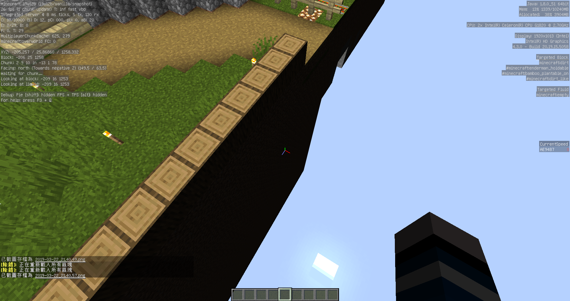 Some entities in the chunks seemed to load normally as I could see hostile and passive mobs floating in the air.