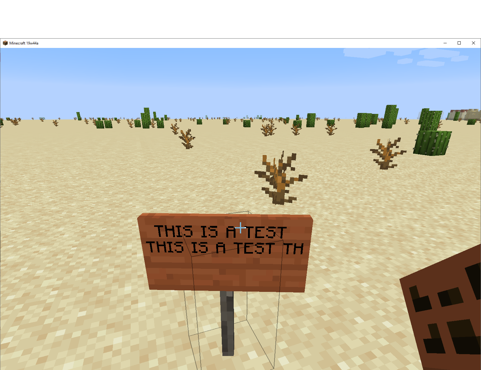 The spacing for the text in version 1.13 and above is broken in that is has become larger than in previous versions, making it so that less text can fit onto signs than previously possible. The attached images are on the same world using the same resource pack, one taken on 1.12.2 and the other the latest snapshot (19w12b) and are the most I can fit onto the signs. (text is intended to say "T H I S I S A T E S T")
