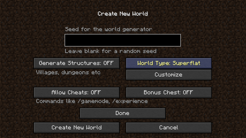 Pressing any button in the "Create New World" menu will result in them being stuck on.