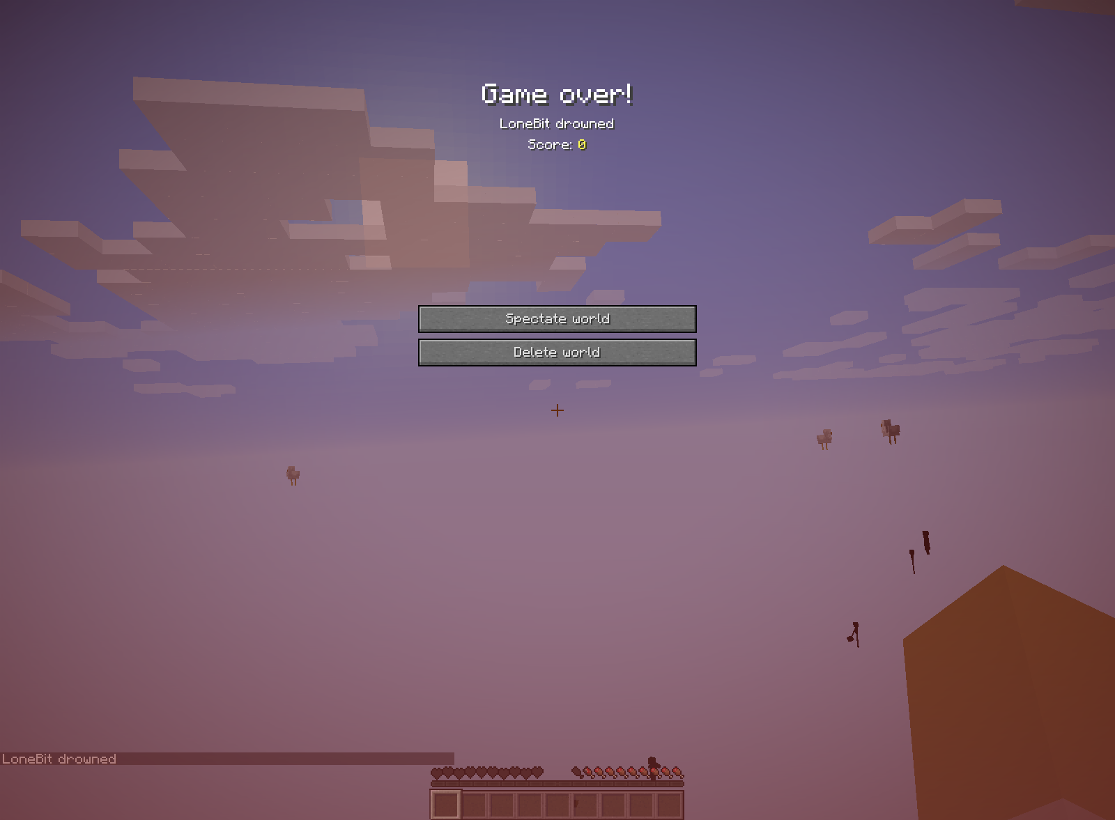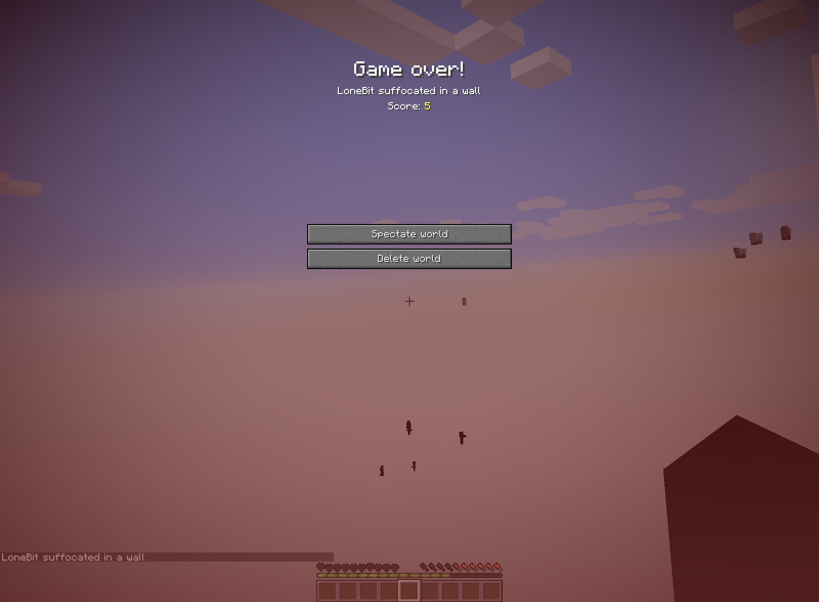 Dying in any way makes all blocks disappear on the respawn screen. But will reappear upon respawning.