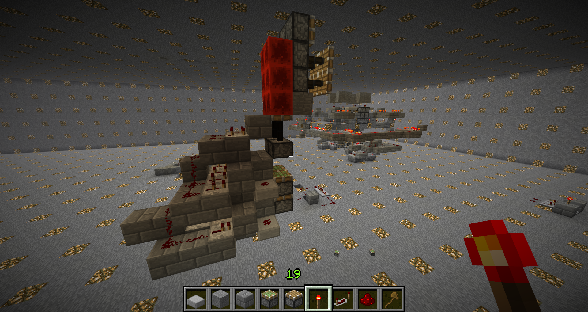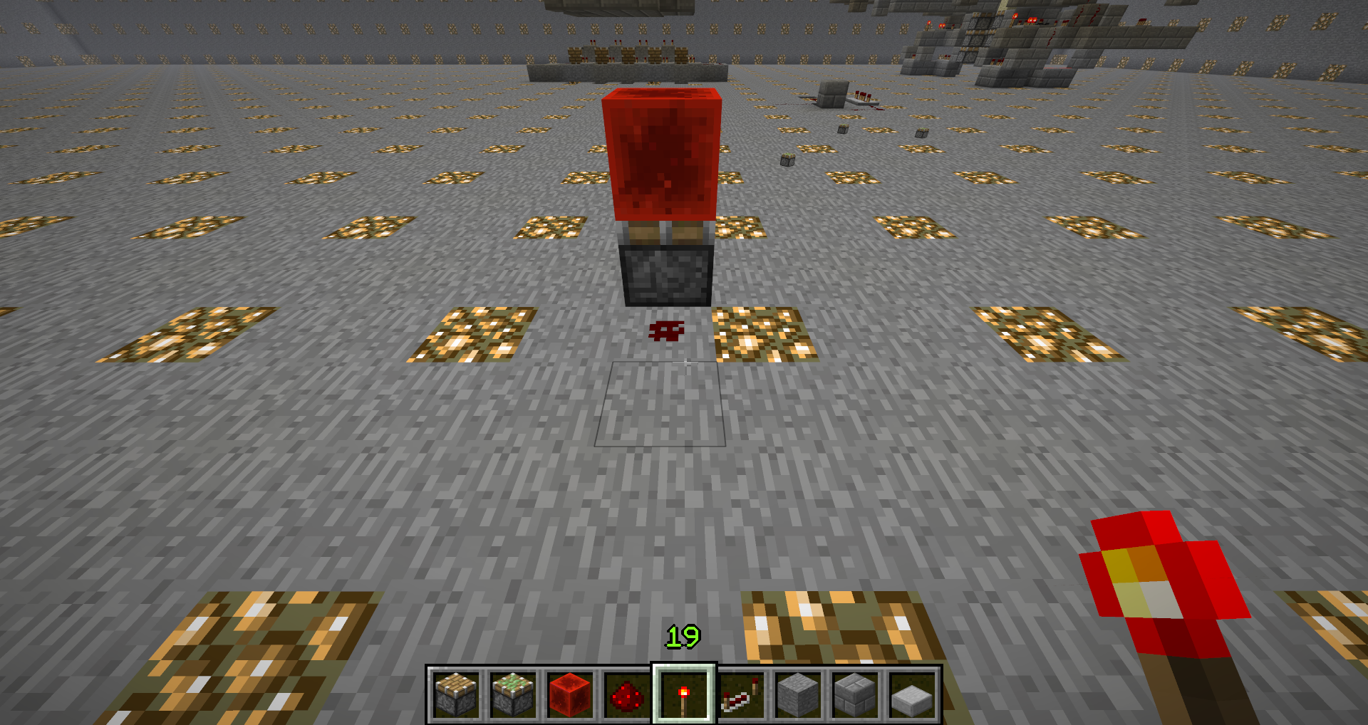 As a part of a bigger circuit, I had to push redstoneblocks (from now on, rb) 3 blocks up. When you place rb on top of a piston (piston facing upwards), nothing happens. But when the piston extends, it wont retract. Also, if you have 2 pistons one by the other, both of them facing up, and you place rb on top of one, you can't place it on top of the 2nd piston without the 1st one extending.