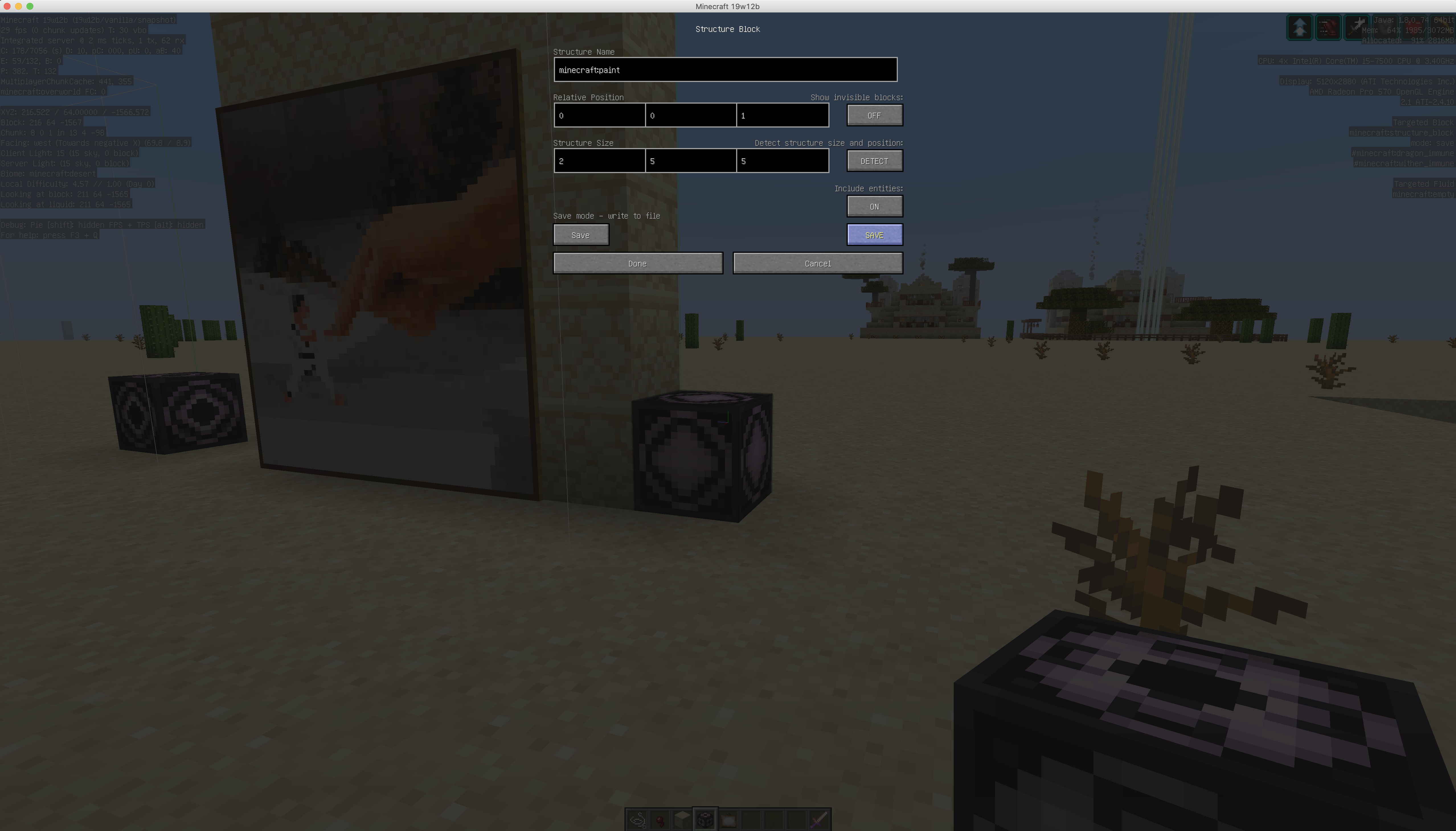 When loading a structure block, paintings load a block higher than their original placement. This is a return of a previously resolved bug.