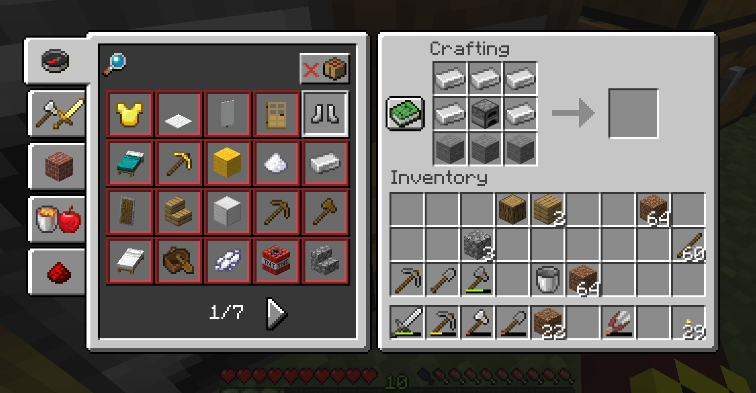 I tried to craft a blast furnace with normal recipe and was unable to it also does not appear in the crafting recipe. Attached is a screen shot of the crafting table gui.Visual!2019-03-28_00.40.39.png!