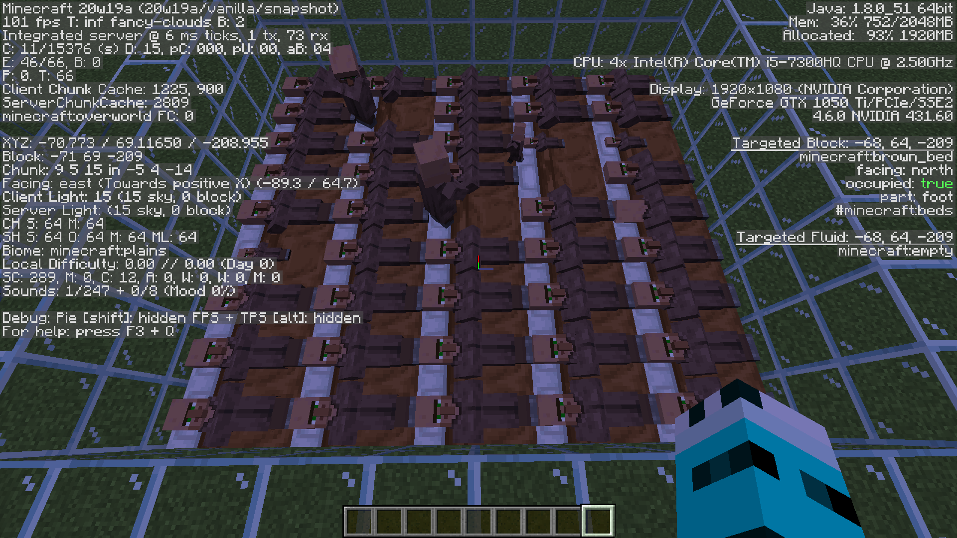 Due to their smaller hitbox, sleeping villagers will become invisible at a distance of 16 blocks. This is significantly smaller than their usual render radius, which is 80 blocks, despite their visual size not changing at all.
