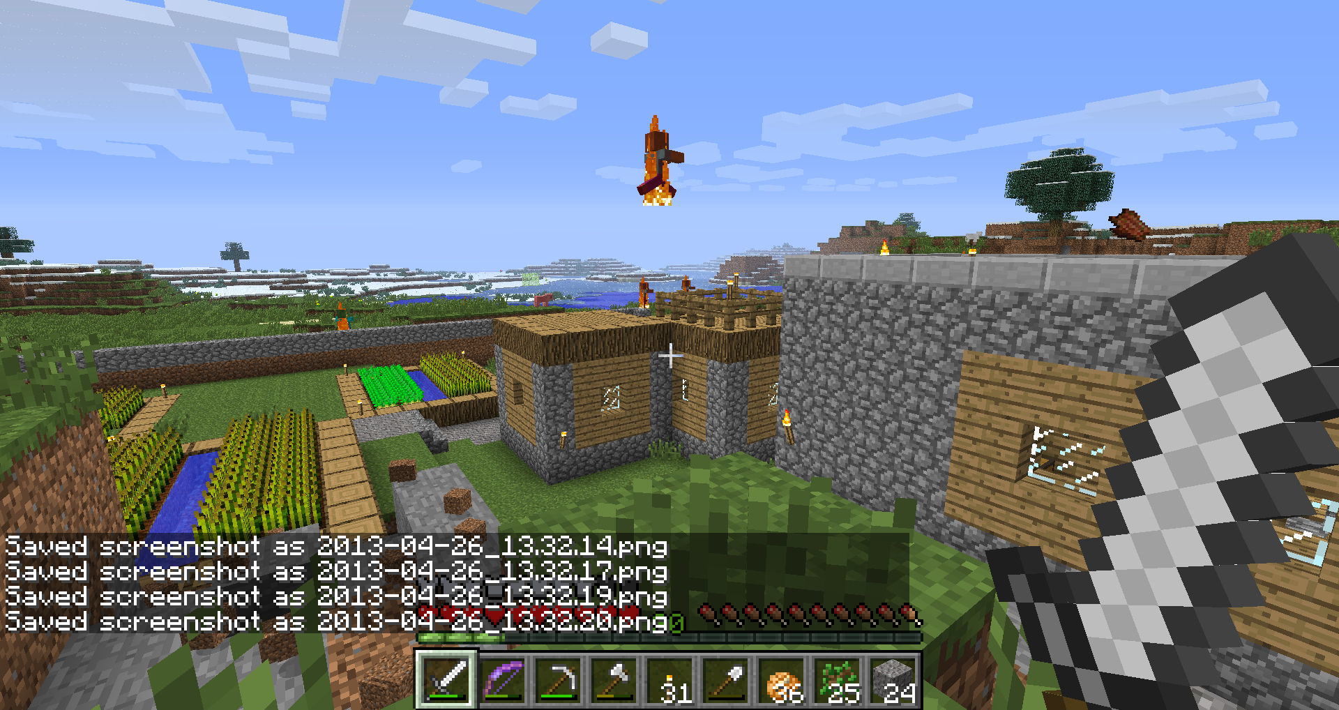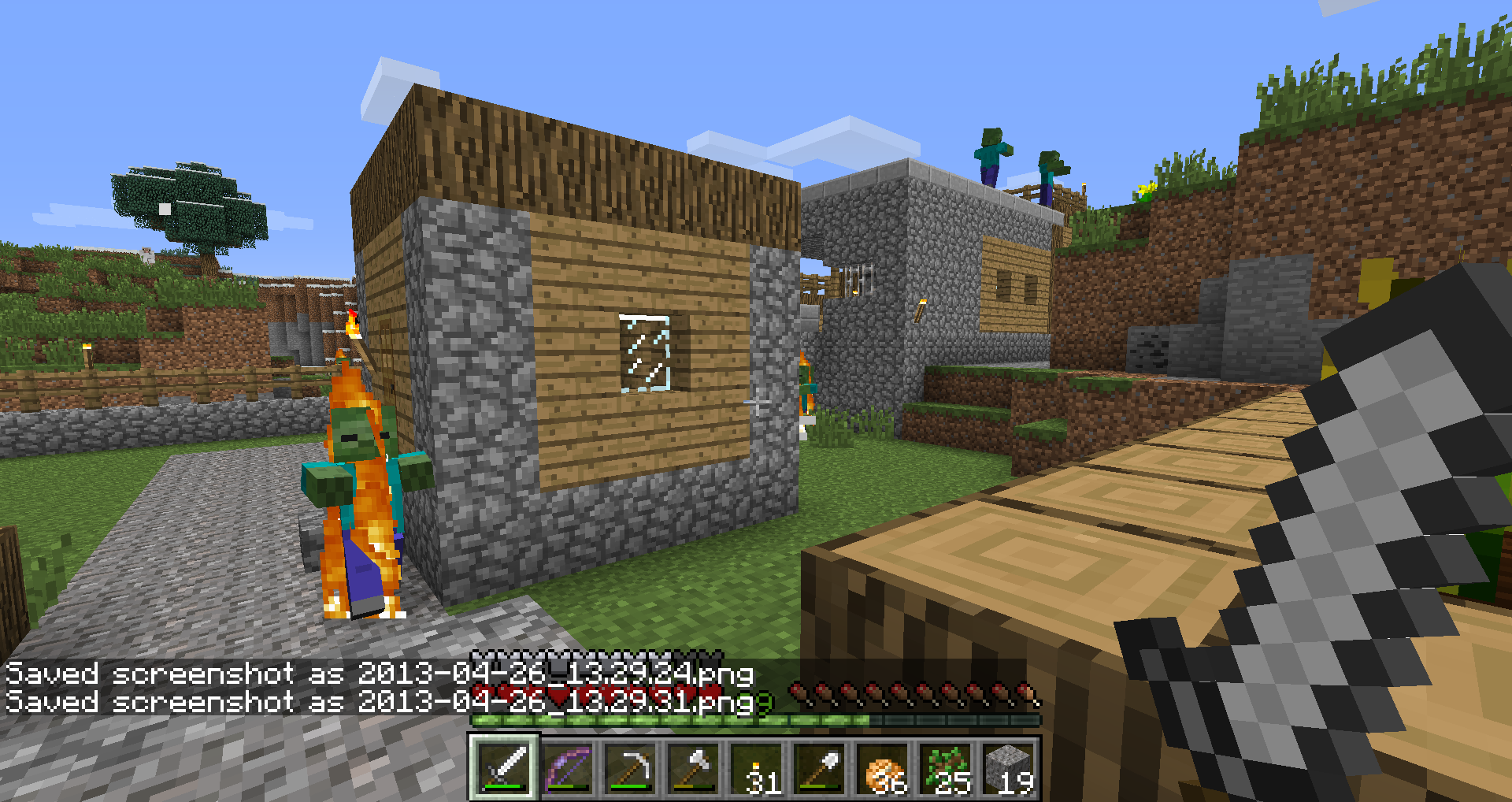 Paratrooping, flaming zombies during the day in village. Wipes out all villagers as usually they do not run to houses but around in circles.