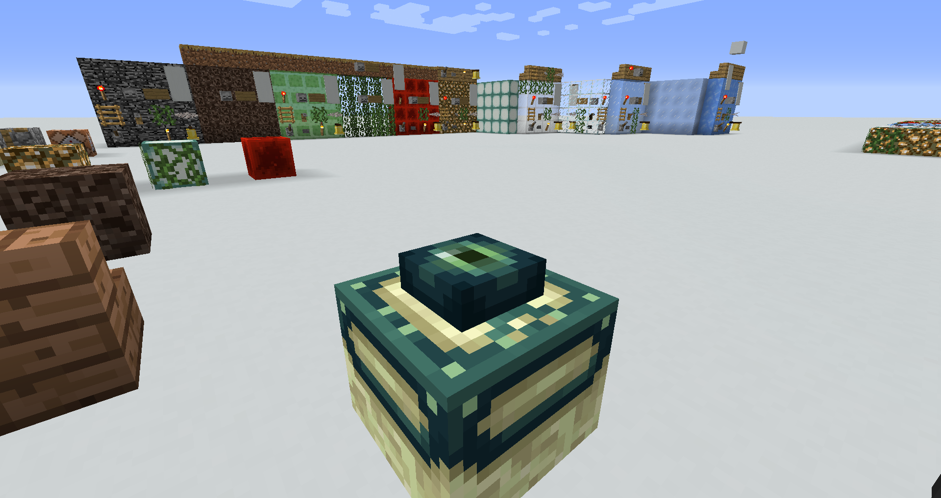 As can be seen through the screenshots, the eye of ender in the frame has more than enough space to support these blocks. However, they cannot be placed on them without using setblock (which I used for the images). Other blocks such as sea pickles, lanterns and torches can correctly be placed on top.