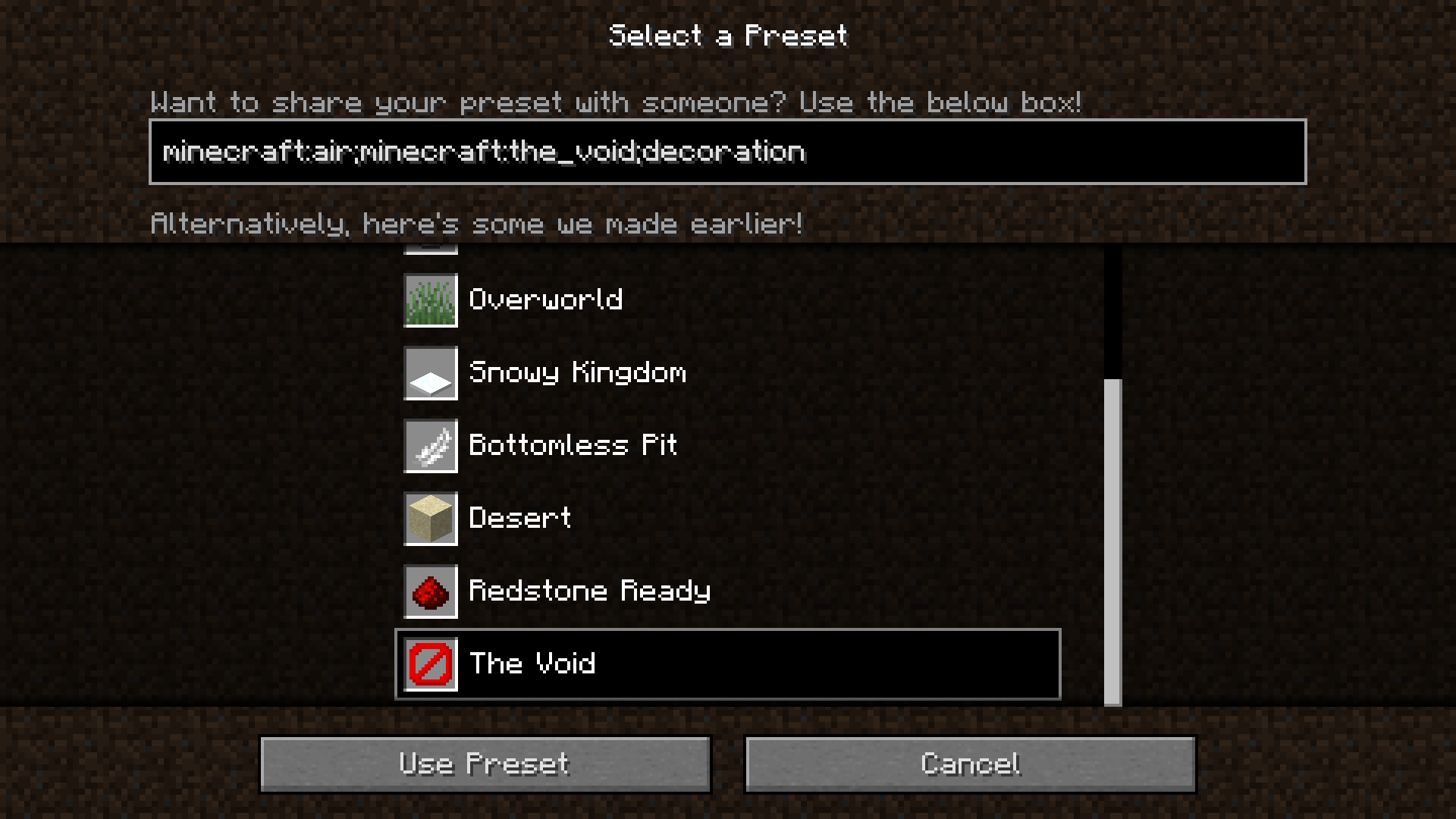 When i generate a flat world with The void, in the platform where I spawn a block is missing