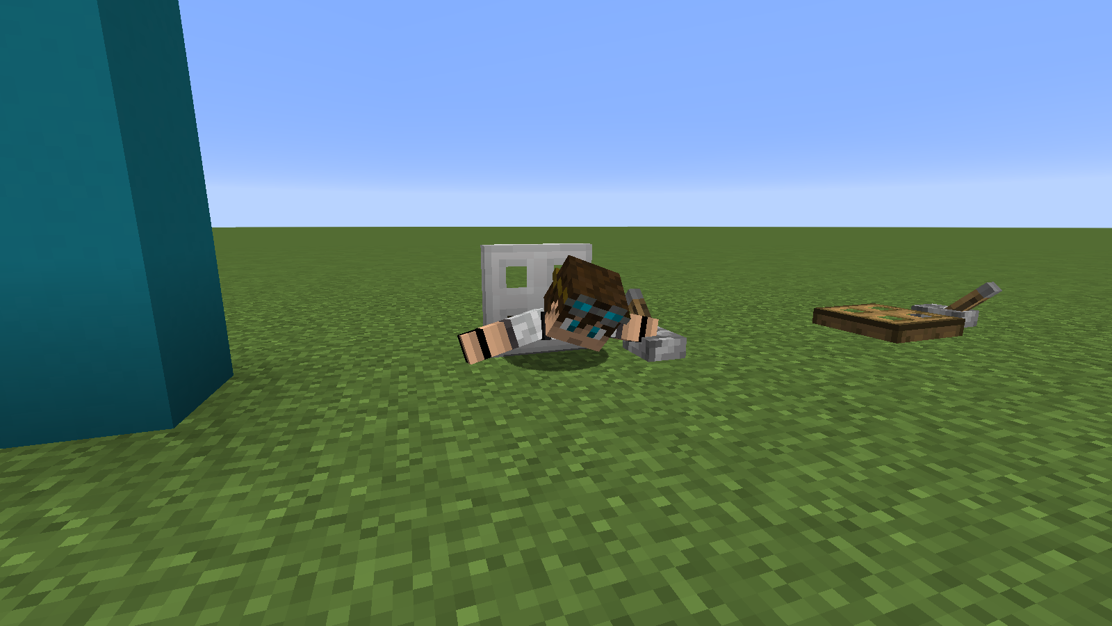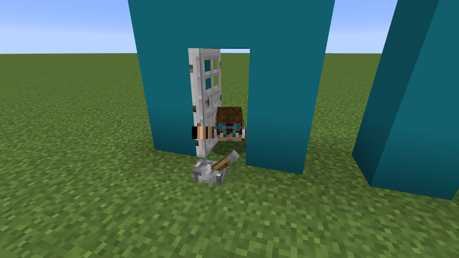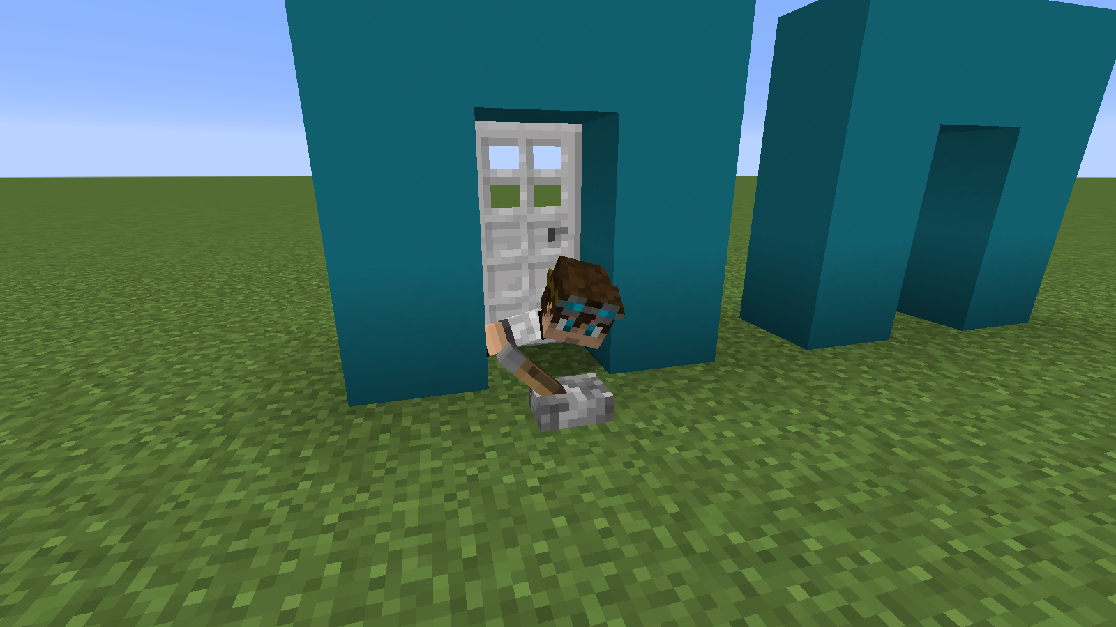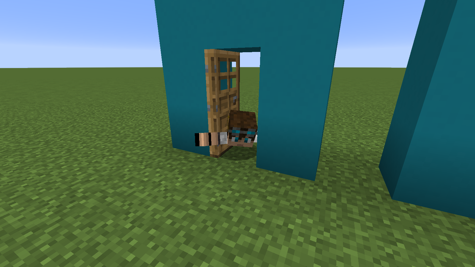 When you stand on the block where a door/trapdoor is placed and try to close/open it, you will sometimes get in swimming animation depending on your position on the block. You can easily get out by walking (swimming) out or by toggling the door/trapdoor again. Breaking the door/trapdoor and/or the block below the door/trapdoor doesn't fix the problem. Works with wooden and iron doors/trapdoors.