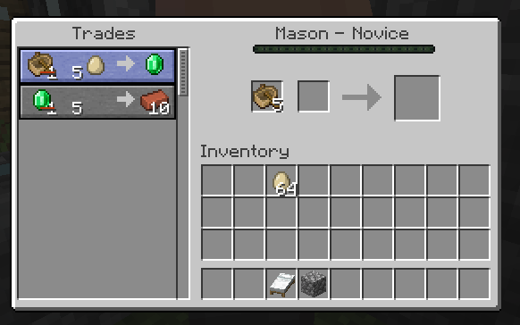 Items with max stack amount can be stacked up to 64 in the new villager trades menu.