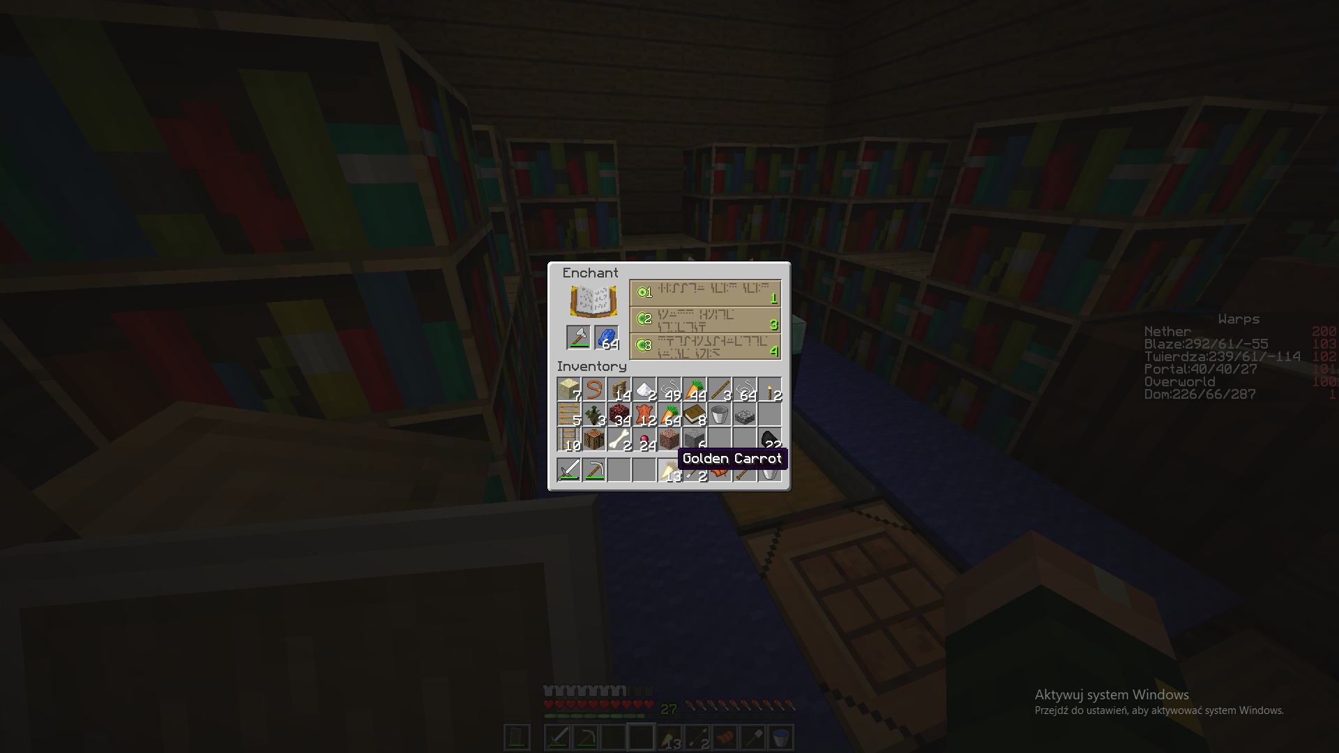Duplicate of MC-2474 – the carpets obstruct the enchanting table's access to the bookshelves.
