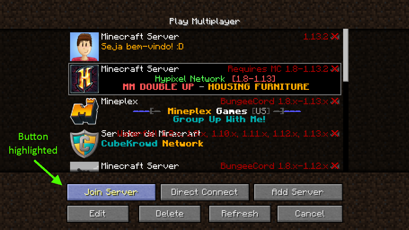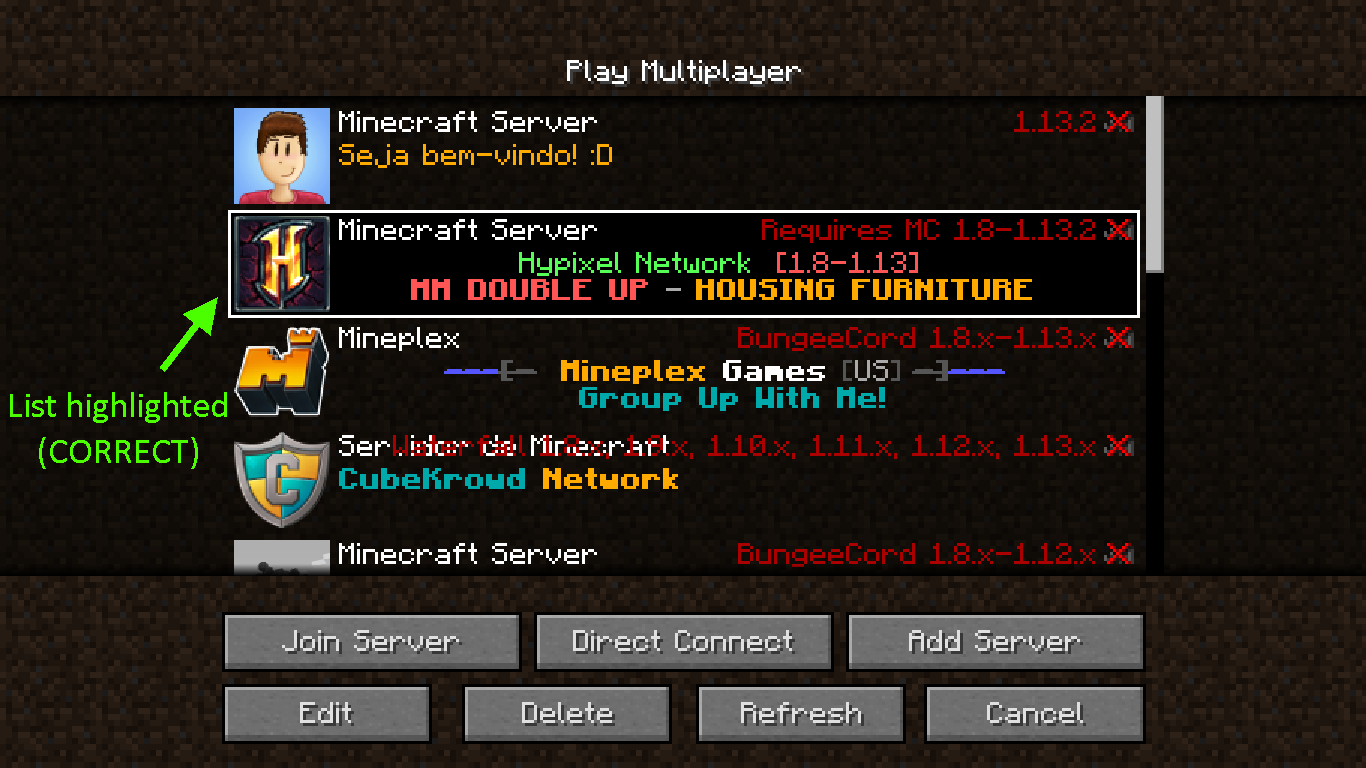 Notice that this is only the case for Resource Packs and Statistics, as the other screens mentioned here make the outline white instead of gray to indicate that the list is selected. The reason for this is likely that they have different behaviors – languages and servers can be selected by clicking, while statistics and resource packs can only be "selected" by tabbing. The bug here is that the "selected" indication is inconsistent across different screens, which should not be the case.