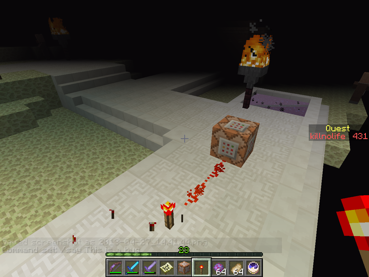 The screens show an example with the say command, command has been set. When i'll try to active it, it don't work.