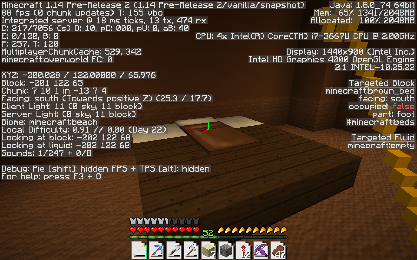 Please attach a screenshot of the bed you slept in the last time while your F3 screen is open.