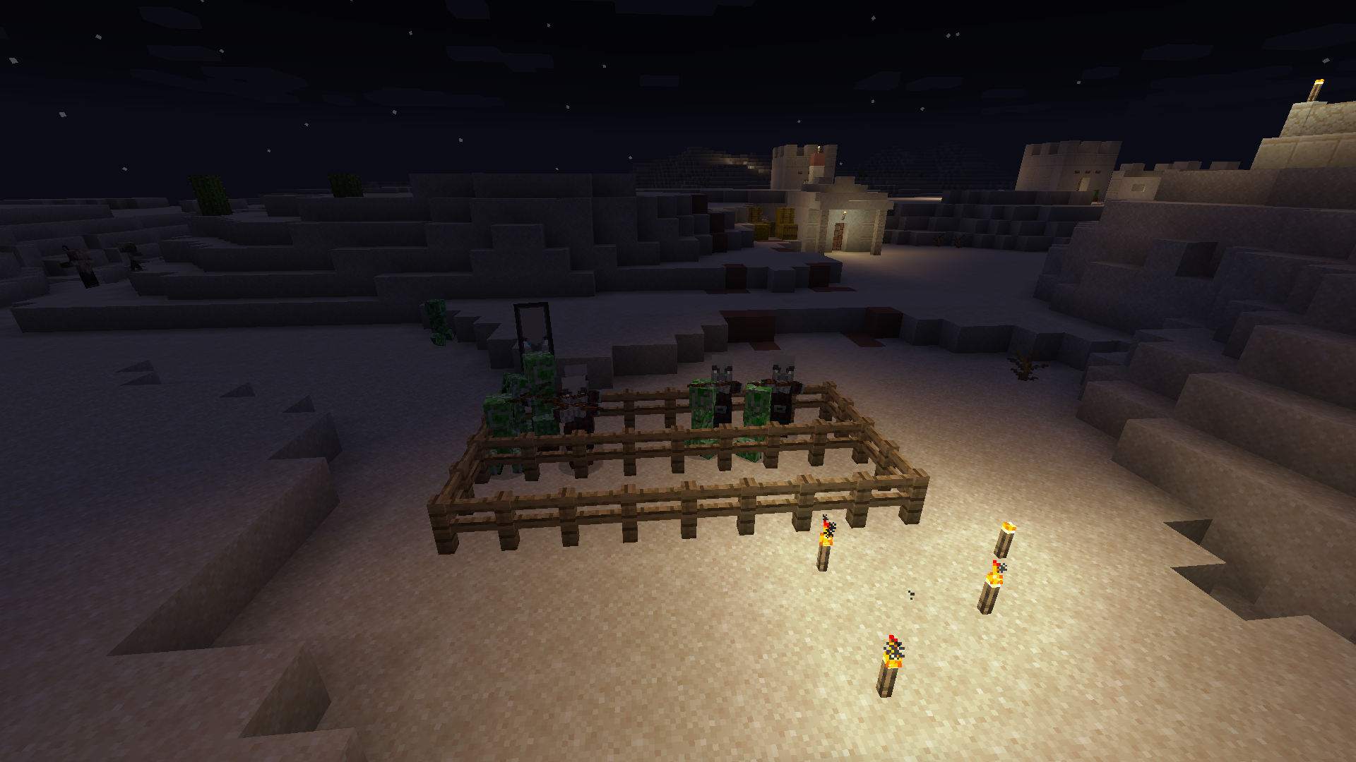 See the screenshots: The pillagers aim straight at me while the creepers couldn't care less