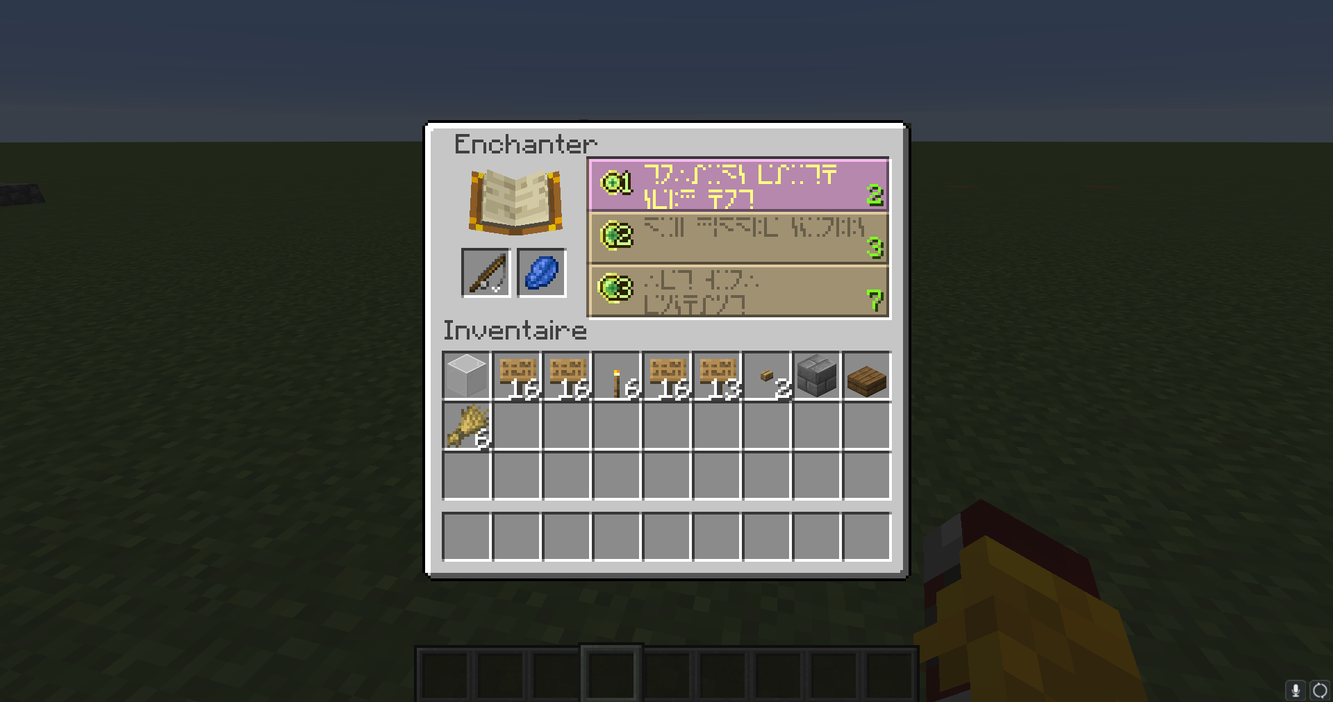 on the fishing rod it is possible to make the enchantment solidity the other enchantment we do not see their name and when we click its action nothing as if there were not. no matter the gamemode.