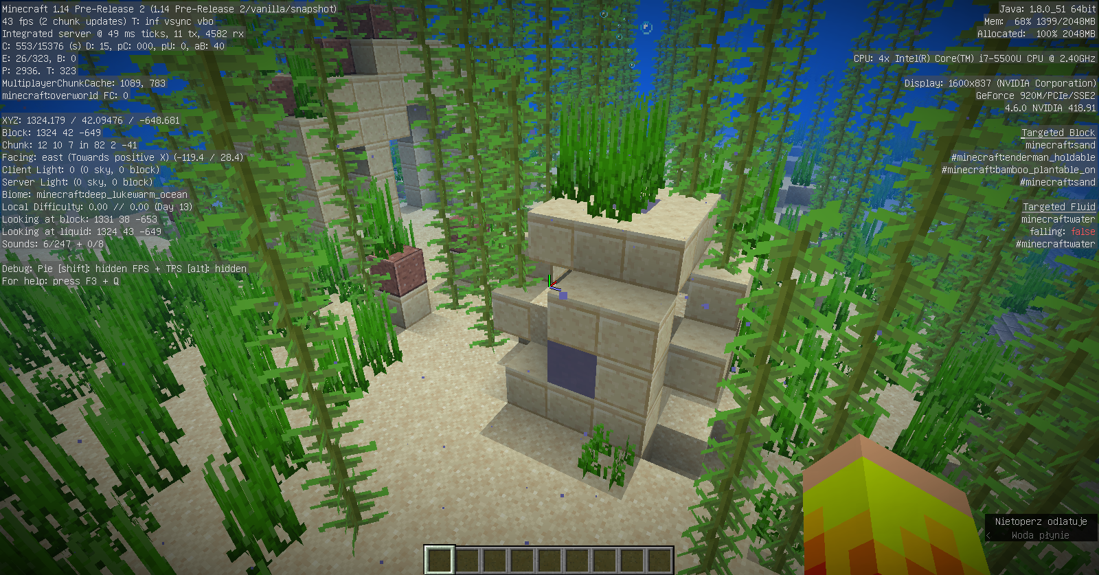 I noticed a mistake for me when the dungeons leading to the End portal appeared. Twice it happened to me that this object was just at the bottom of the ocean, once just below the surface of the earth. I tried to find a portal on Creative mode several times, but then the portal was under Mega Taiga Hills, under a lake in a Birch Forest. I do not know if this problem has occurred yet. I am enclosing the screens of the above-mentioned cases.