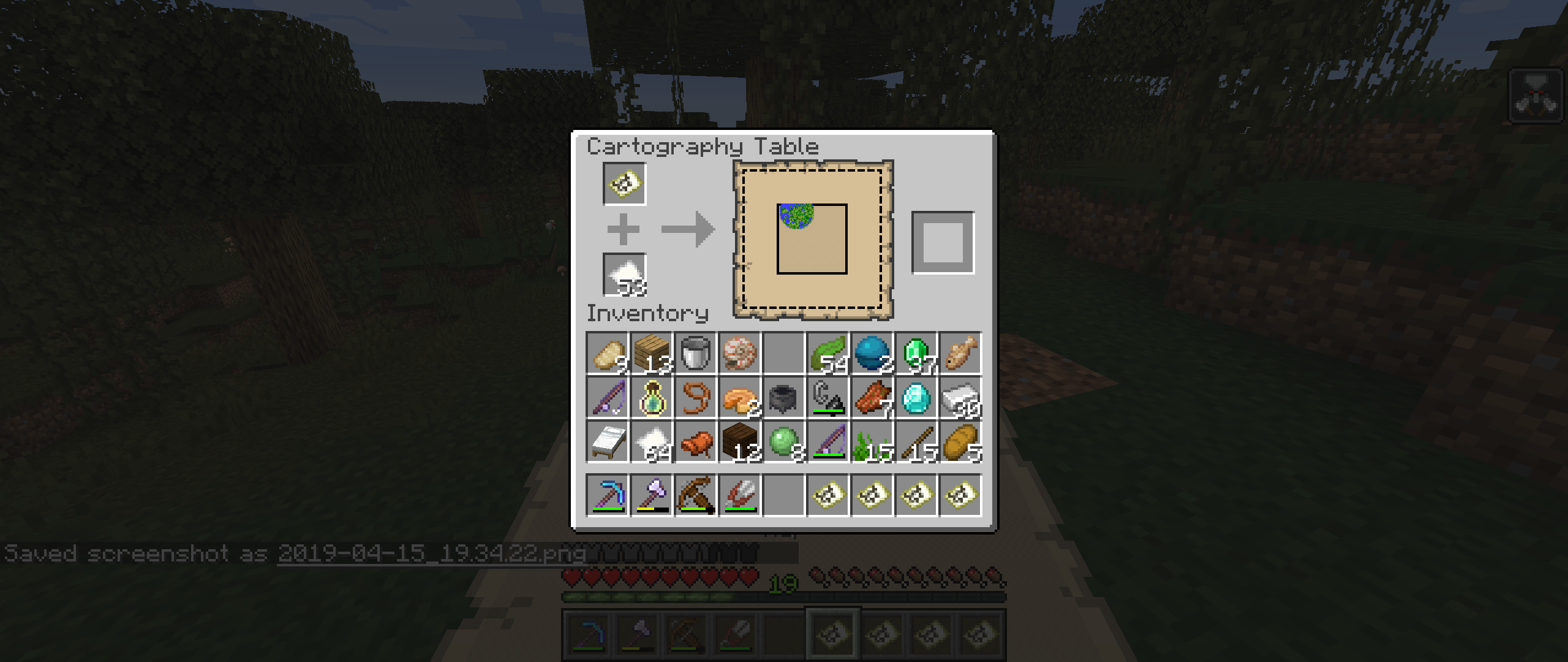 If Shifts Clicks a Output of a zooming out recipe map in a Cartography Table, it clone the original map in the Input and gives a Zoomed out map