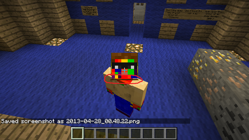 If you make and load any customizable skin and change the bottom portion of your head, that part will appear to float below the rest of your head creating an unattractive looking skin. Unlike the rest of your head, that portion is not properly attached. Attached are some examples, and the incorrect portion is circled in red. In this example I have made my bottom portion yellow and purple, and as you can see no matter what angle (and even a straight on point-of-view) it is not attached properly.