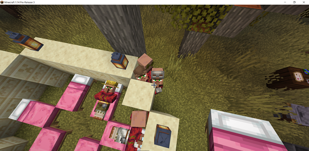 Villagers have a difficult time finding their beds or around complex terrain. They'll often throw themselves off large cliffs or overhangs, causing in death. Some villagers reliably force themselves into a wall in an effort to get to a bed that is blocked by buildings or structures. Some get stuck in certain headlevel objects, such as lanterns, and will not move until the lantern or block is removed.