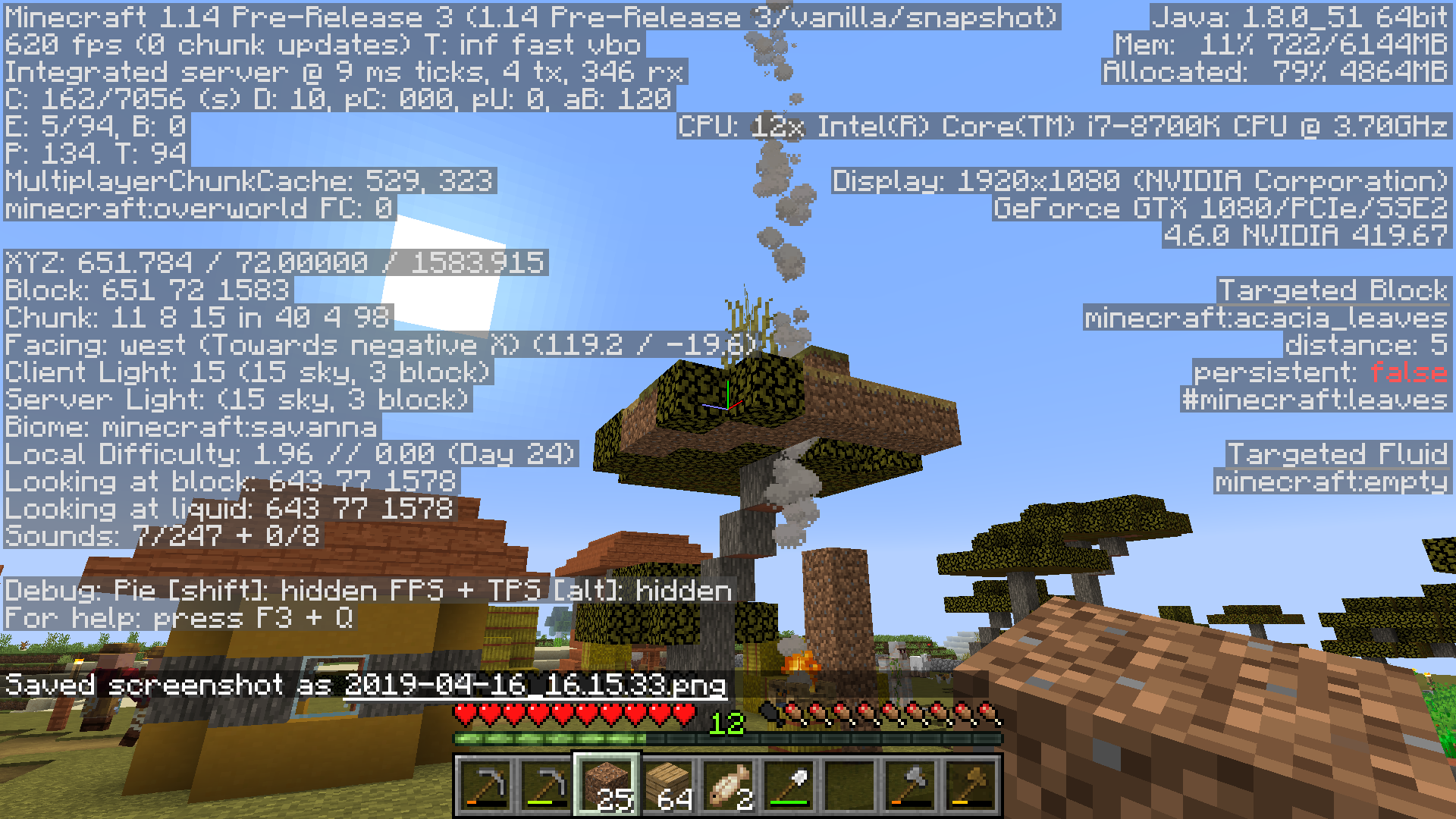 In survival, placed a campfire on top of a hay bale under the canopy of an acacia tree. Smoke went up to leaves. I placed dirt so I could break through the leaves. Upon hitting the leaves with dirt in my hand, a big bunch of the leaves turned to dirt pathway and even had grass growing on them. See pictures below.