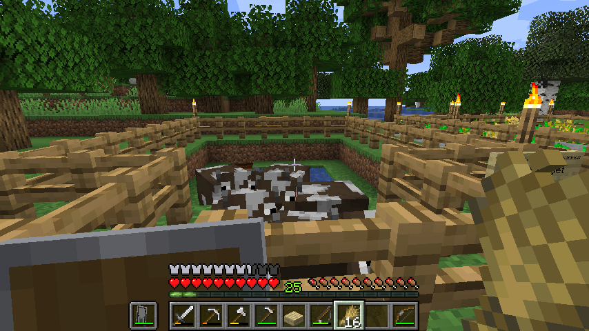 3. Find cow and put wheat in hand. Right click to feed cow (doesn't work).