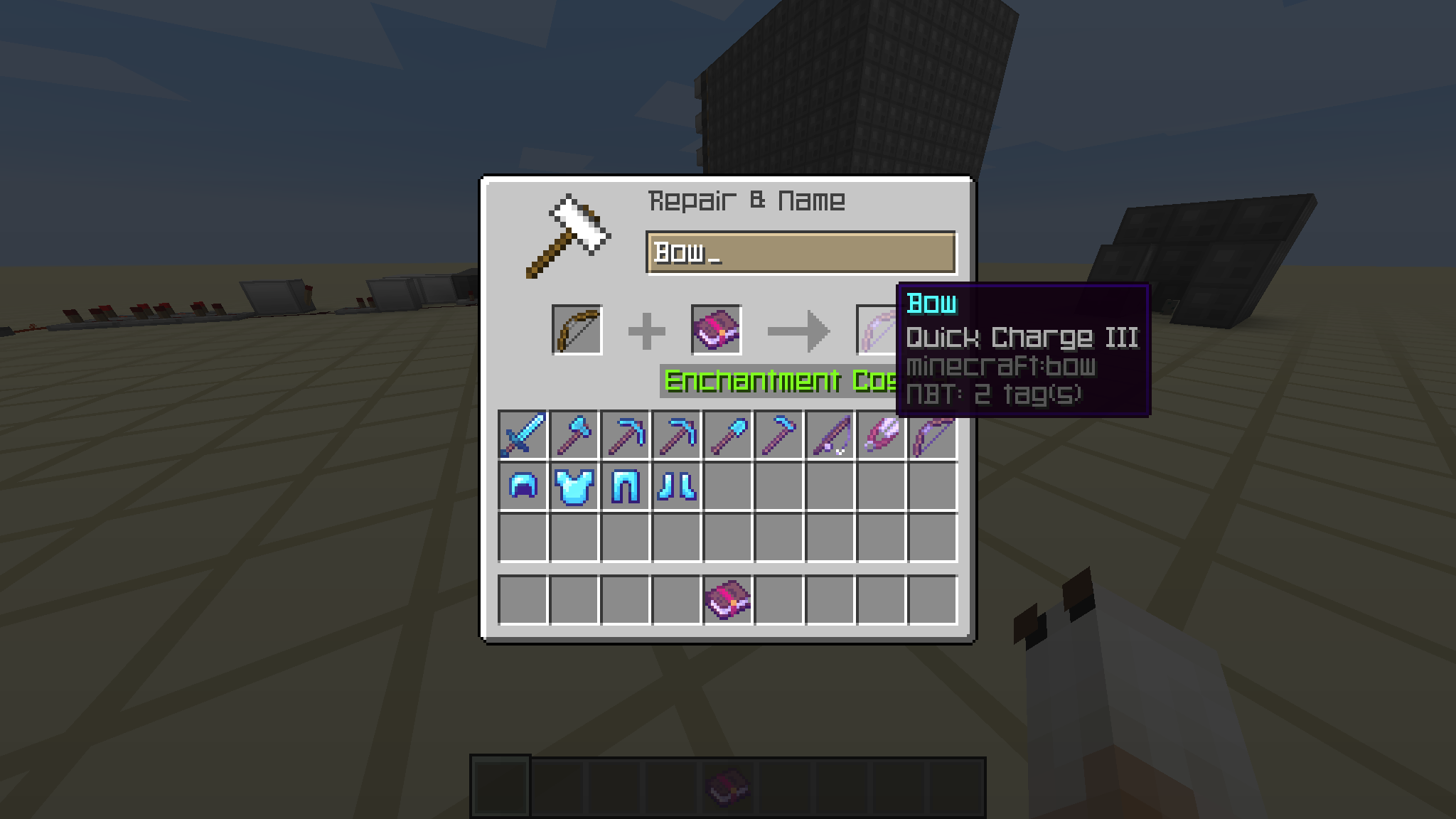 I was in a creative world, and I was able to use an anvil to place Quickshot and MultiShot onto a normal bow, as well as putting the regular bow enchants on the crossbow, the enchants did not have their intended purpose on the wrong bow, just shooting normal arrows in all circumstances.