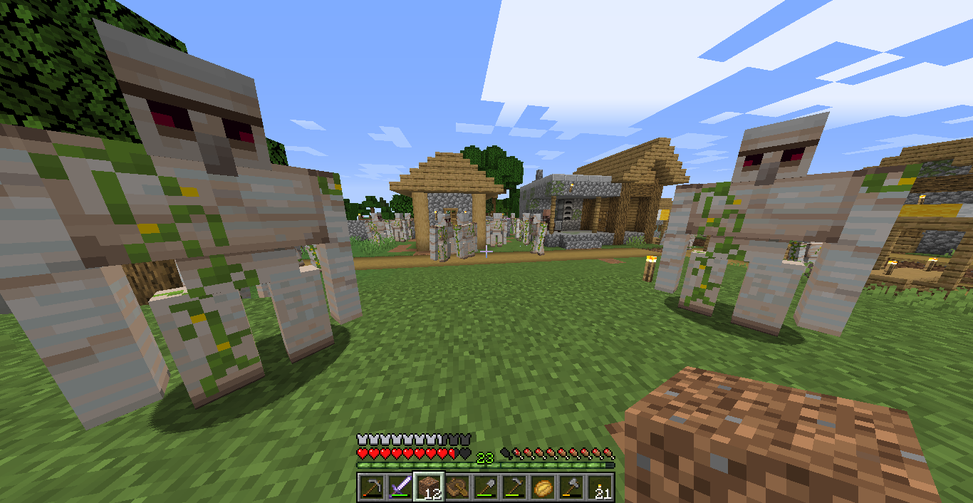 NPC village spawned with only a Weapon Smith and generic buildings. I added the workplace blocks for Farmer, Fisherman, Cartographer, Butcher, Leatherworker, Fletcher, and Tool Smith. I also built a wall around it. I have made ~10 trades with a them. Every time I come back to the village there are more and more Iron Golems. There are currently ~30 of them while I only have maybe 10 villagers. I have attached a screen shot that shows some of them. I have not done anything special to spawn them.