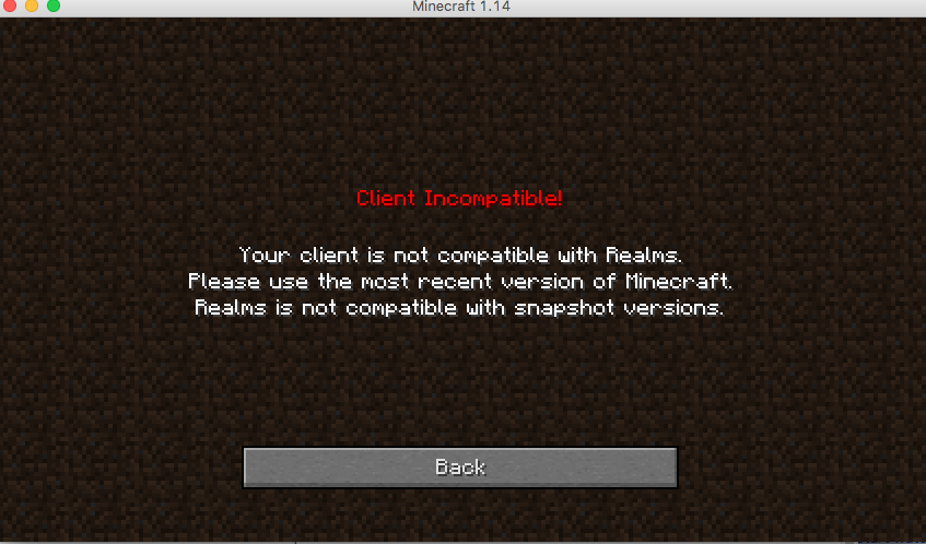 The image below is showing that when I open realms, even though I am in the 1.14 main release, Realms is still identifying this version as a snapshot, even though it is not.