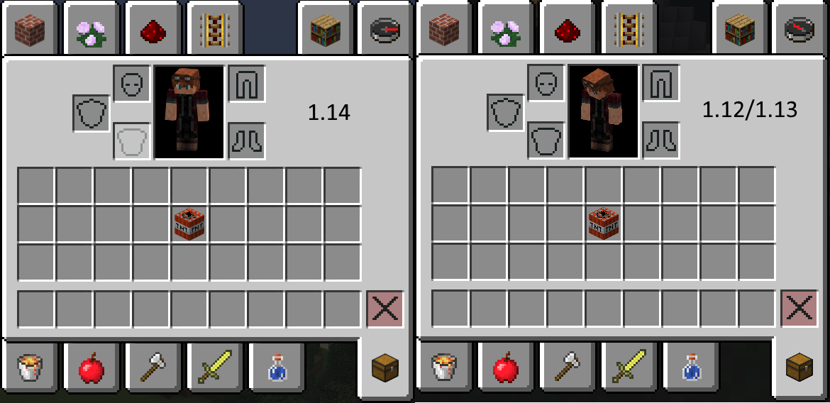 image picturing creative inventories shows 1.14 on the left, with 1.12 on the right (ignore slightly different resource pack)