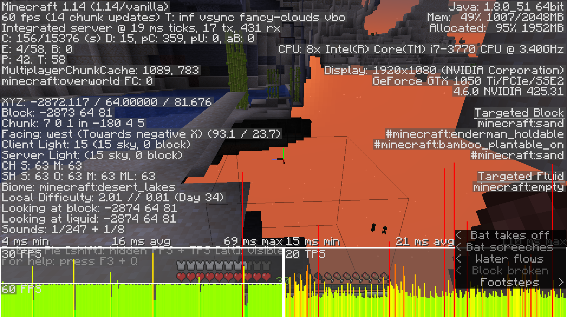 1.14 release. Here is a screen recording of the problem with F3 open. Issue not present in previous releases. Looks terrible!