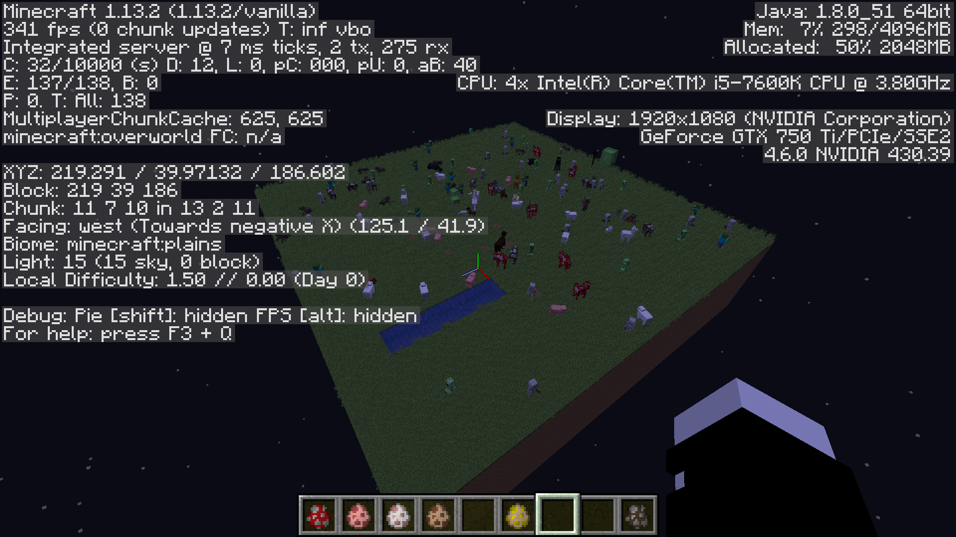 There are a lot of entities in this map as well, a few area effect clouds (with a radius of 0) and about 150 item frames. These, however, shouldn't do anything, as they don't have an AI, and don't have a hitbox either.