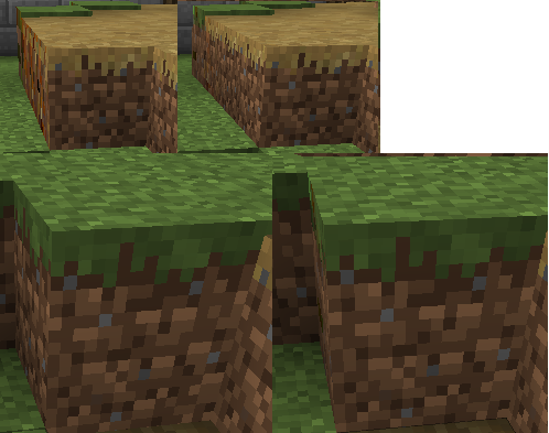 Path blocks have a weird reddish-brown overlay at an angle, and grass blocks seem partially transparent.