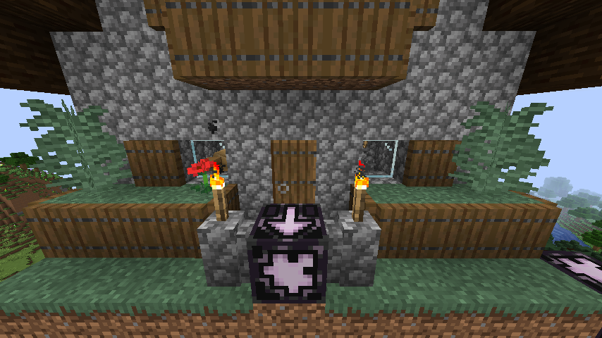 The library in taiga villages has walls in front of it that look like they're connecting to an invisible block. This happens because there's a jigsaw block in the structure file there, and the walls aren't updated upon being generated into the world.