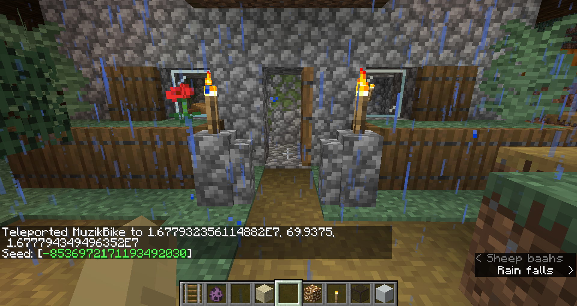 Coordinates: /execute in minecraft:overworld run tp @s -506.34 80.00 49.13 415.35 43.50Linked issues