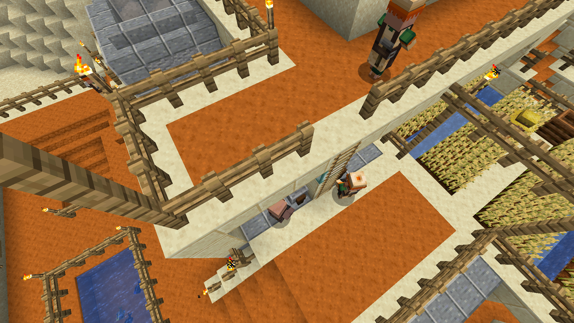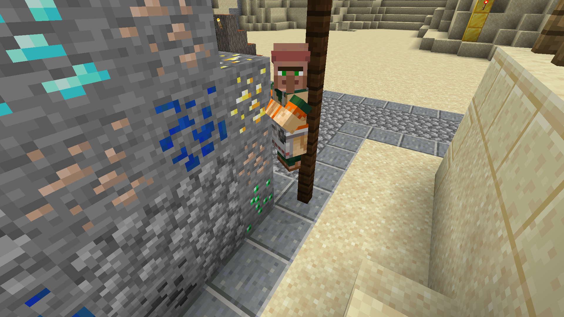 I think the villager/-s overhaul is a great success. And whilst most things regarding professions and the new schedules for villagers work just fine, I noticed some annoying pathfinding issues which prevent the villagers from reaching their workspace or makes it impossible for them to roam without bumping into something. Especially ladders and fences are their weak points. They act like they are not there. In the screenshots 2019-04-26_17.22.17 - 2019-04-26_17.22.49 one can see a villager who tries to get around the corner yet fails because he is not taking the fence into account. After some jumping, he eventually made it. Just to bump into the next fenced corner. The biggest problem is, however, that villagers are ignoring ladders. They certainly are able to use them. Still, they are not making use of them in their pathfinding. In 2019-04-26_17.00.57, 2019-04-26_17.01.18, 2019-04-26_17.54.48 - 2019-04-26_17.54.51 villagers who are trapped on a roof can be seen. They climbed up the ladder and could not make it back down without me. 2019-04-26_17.04.45 - 2019-04-26_17.05.02 show two fishers who cannot escape their own attic. In the remaining pictures are some villagers who desperately try to reach their workplace. Interestingly, they even decided to not use the stairs in the back. Since the won't use ladders and don't take too long a detour they never get to their workstation.