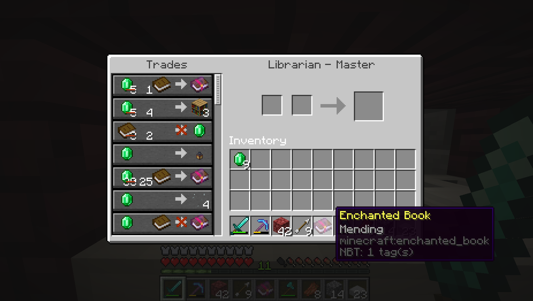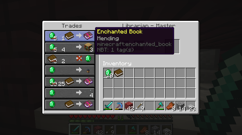 Villager offers Mending book discounted to one emerald