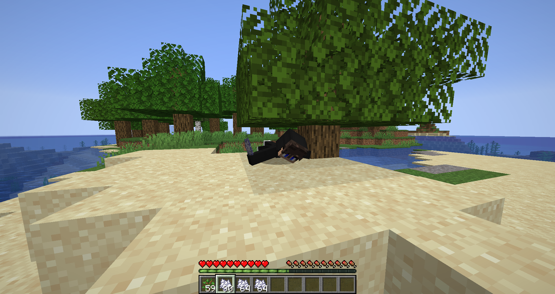 When you grow a tree, or are in the area next to one when it grows and the tree is a small five block high tree the player will be forced into a swimming position. Whereas in other versions you would simply get stuck in the leaf block.