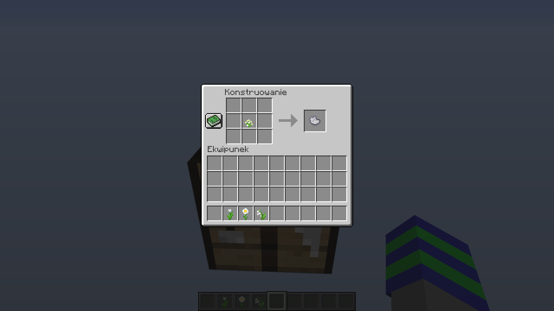 Crafting certain flowers that are white yields light gray dye instead of white dye as expected. All flowers that are affected were introduced before 1.14. For example, take a white tulip and notice how it crafts into light gray dye. In contrast, the lily of the valley, which was introduced in 1.14, crafts into white dye as expected.