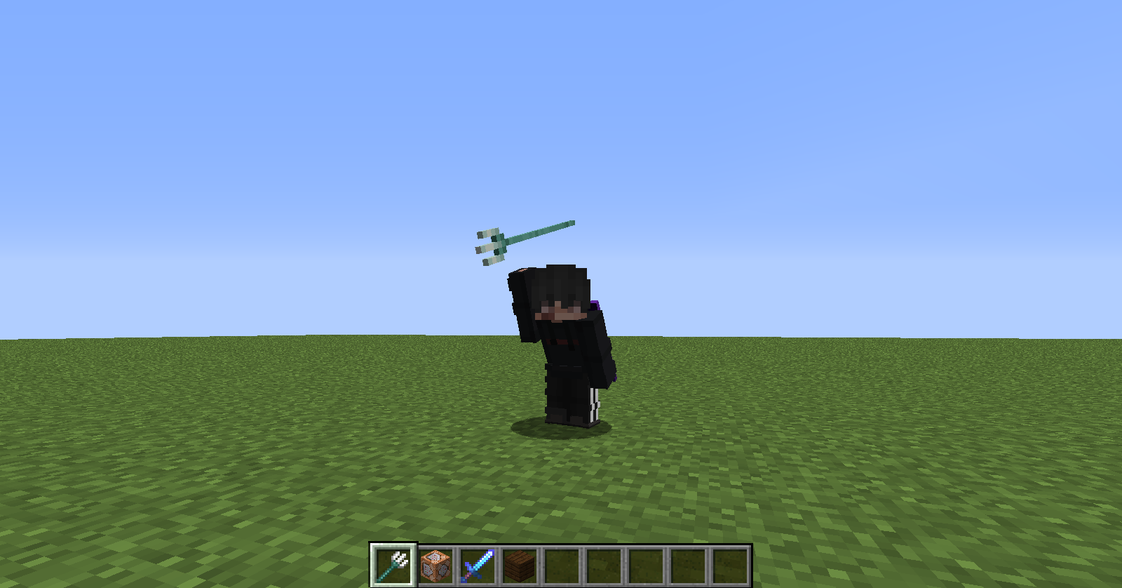 Aiming then crouch and the trident still in my hand.