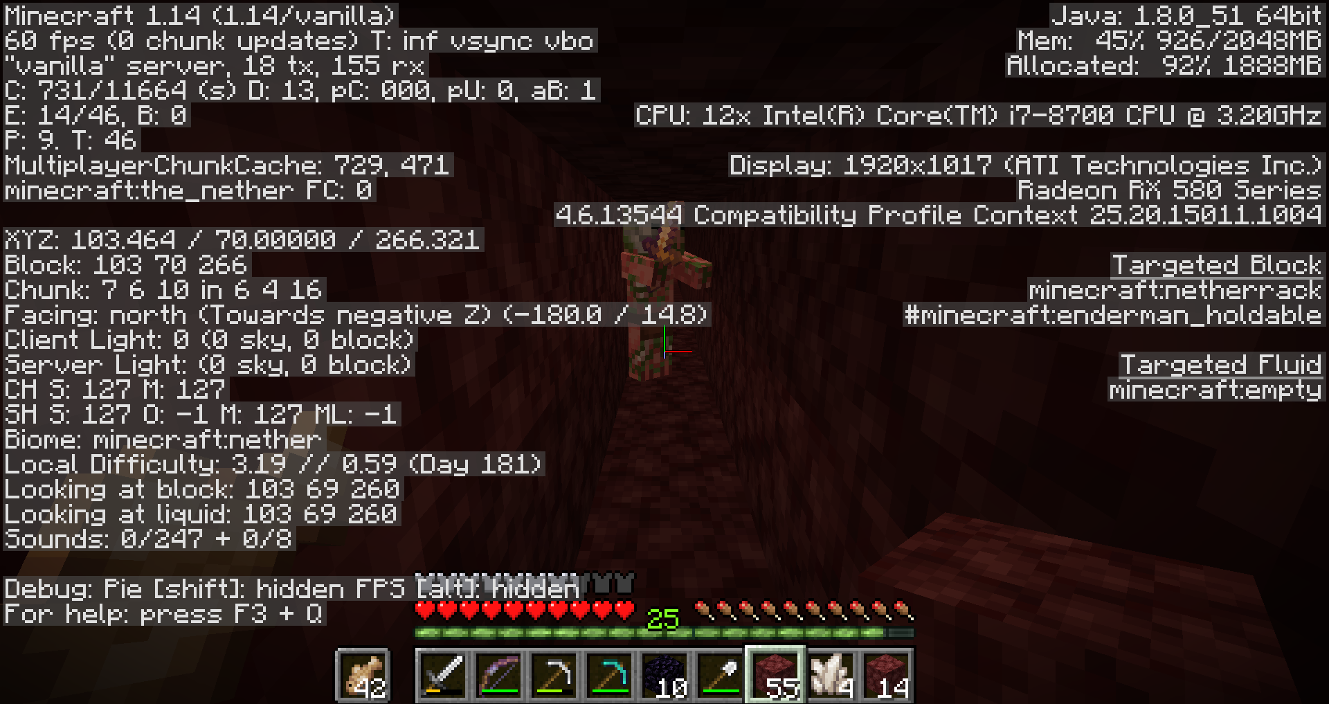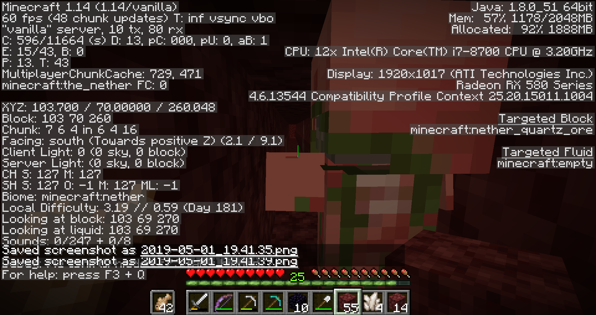 included screenshots from the nether shows the x-coordinate rapidly increasing while moving towards a still pigman, then after passing him, the x-coordinate stops even after moving away from the pigman.
