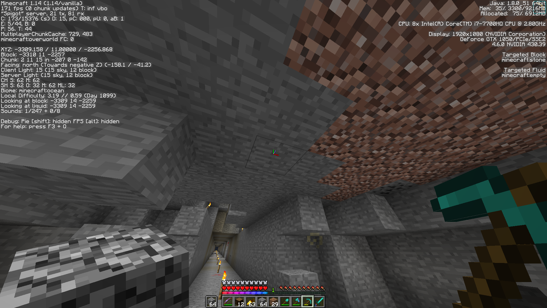 Skylight is being rendered underground where there is no direct sky access. Both the client and server are confirming that the skylight is there when there shouldnt be.